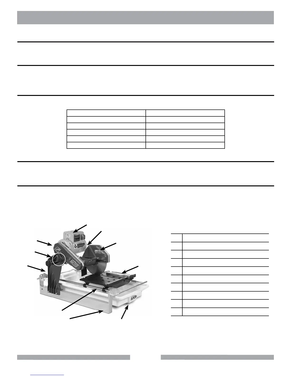 MK-100 TILE SAW PRODUCT SPECIFICATIONS