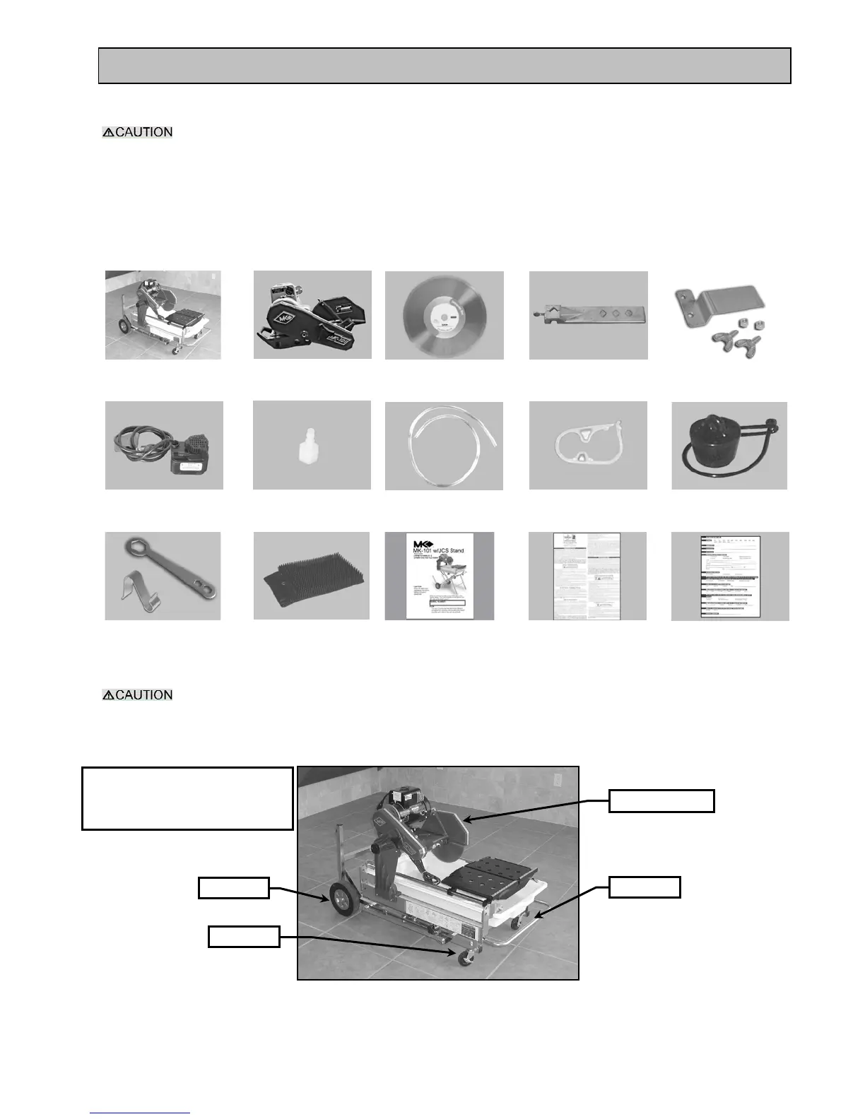 inch wet cutting continuous rim diamond blade, one (1) adjustable cutting guide, one (1) bull nose cutting