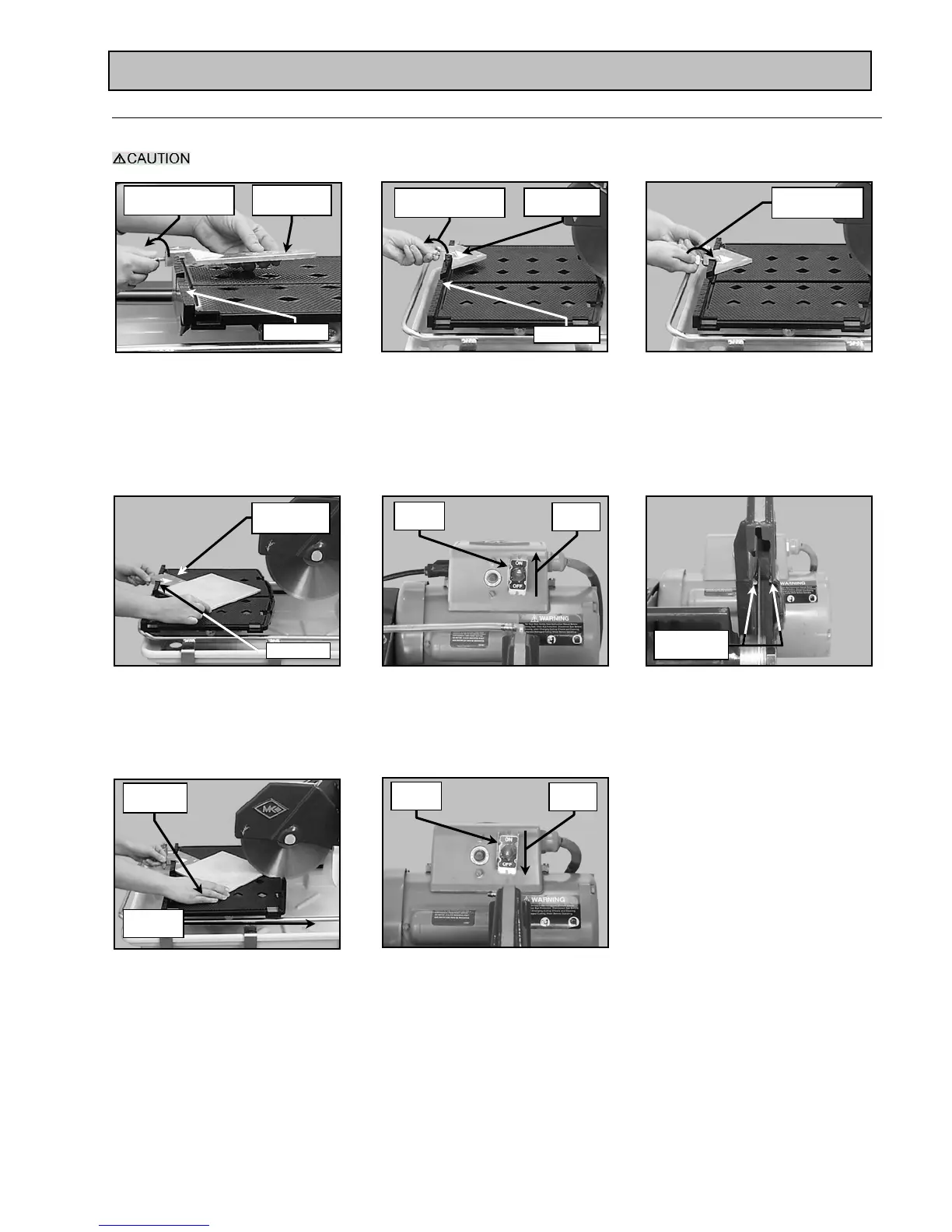 NOTE: If Cutting the tile in two equal halves, align the tile in the V-notch of the Movable Cutting Table Ruler/Stop.