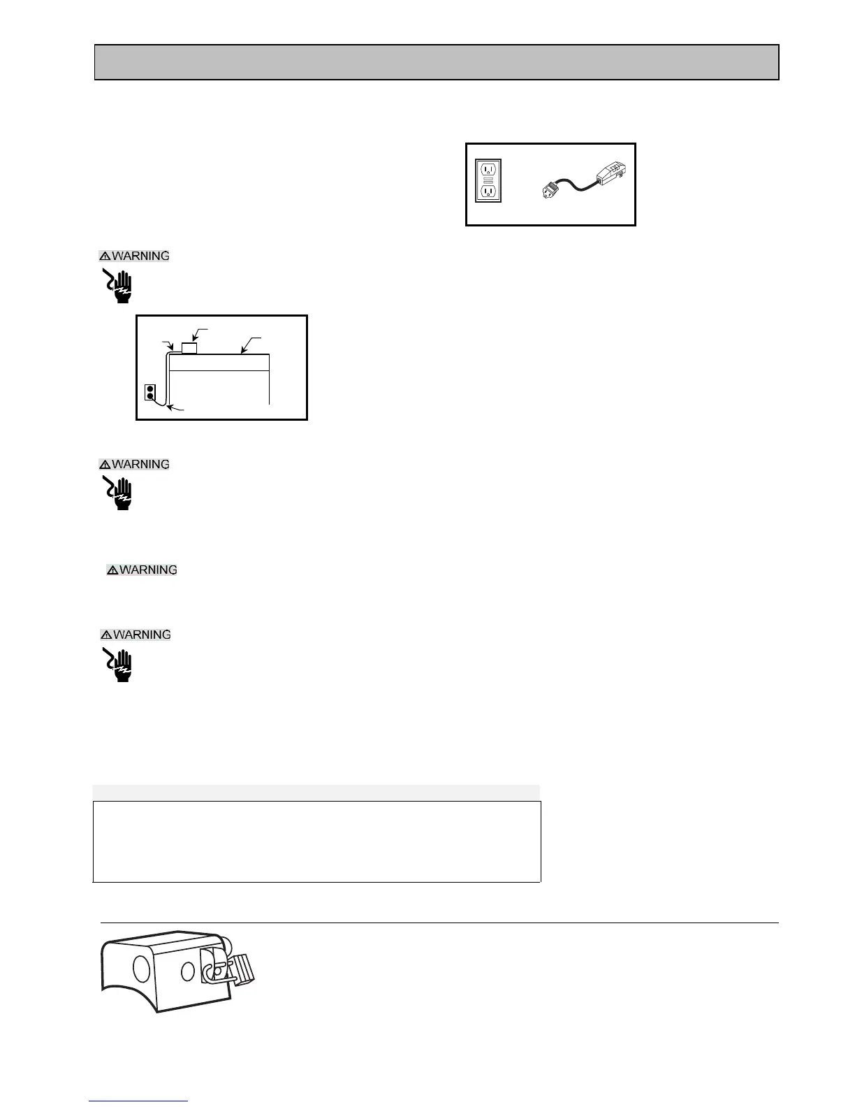 If the plug or receptacle gets wet, DO NOT unplug the cord. Disconnect the fuse