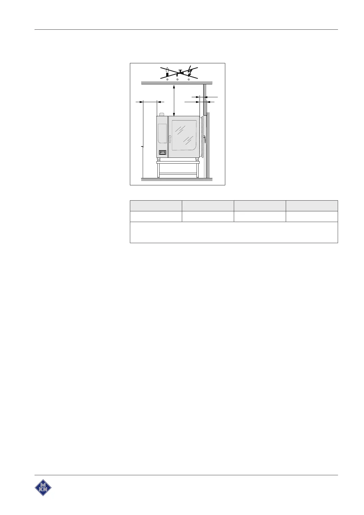 Image: Minimum clearances to walls, ceiling or units