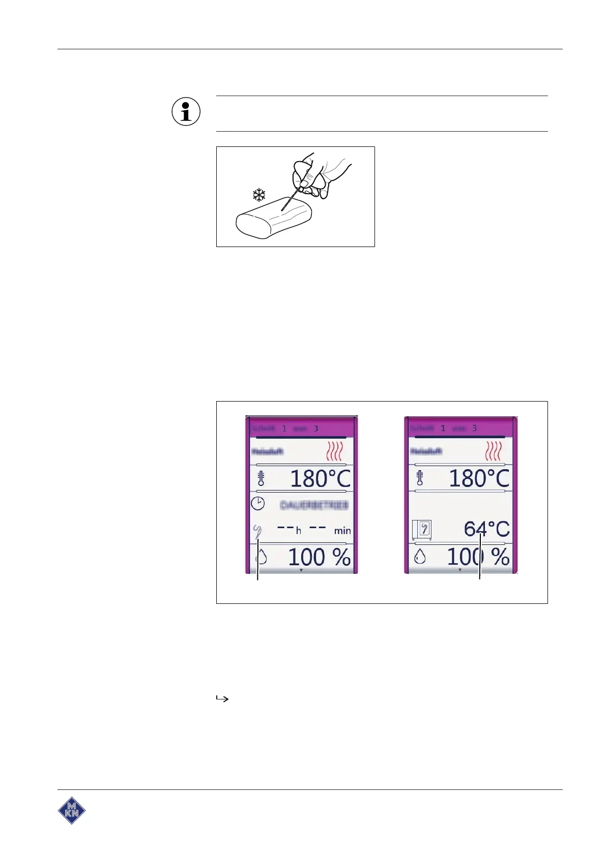 MKN FlexiCombi MagicPilot Series - Measuring the Core Temperature When Cooking Frozen Food; Core Temperature Display with Time-Controlled Cooking Process