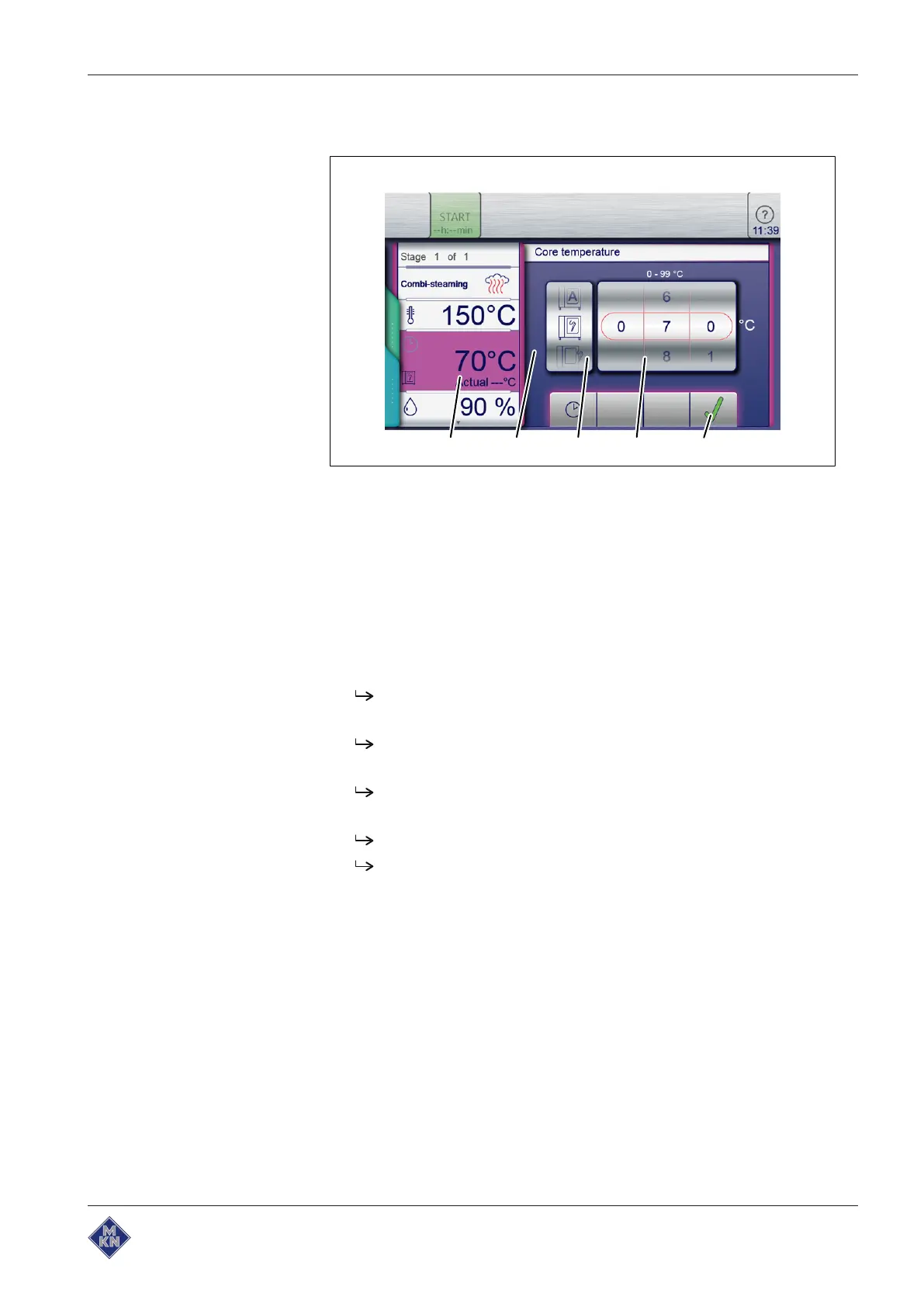 5.6.3 Setting the core temperature