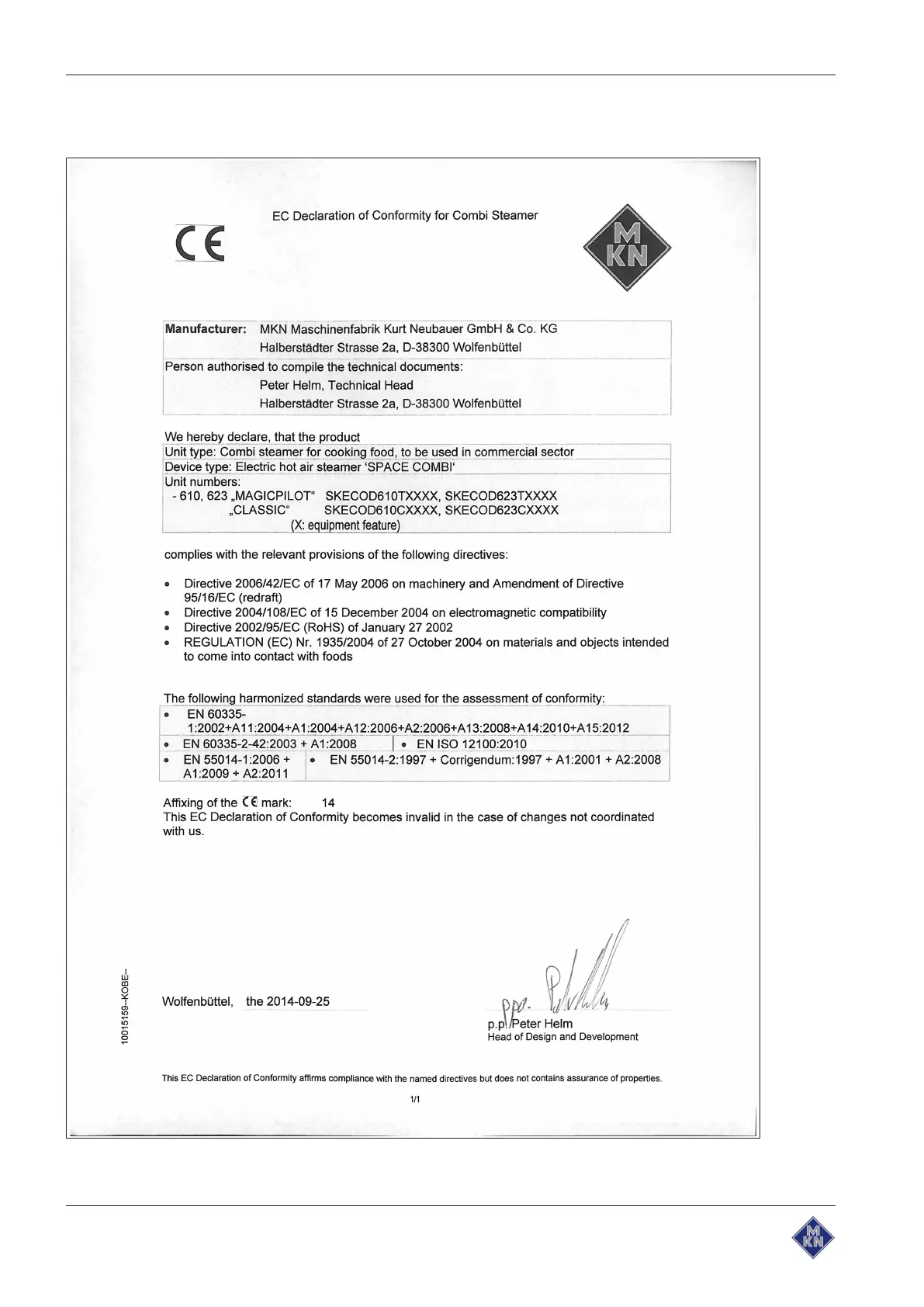 MKN SpaceCombi Junior MagicPilot - 9 Manufacturers Declaration
