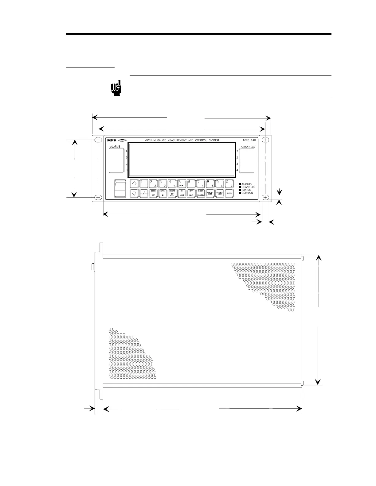 MKS 146C - Dimensions; Figure 6: Front Panel Dimensions; Figure 7: Top Dimensions