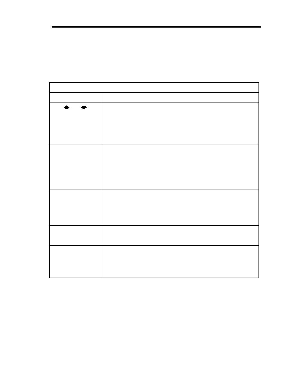 Table 6: Description of the Front Panel Keys