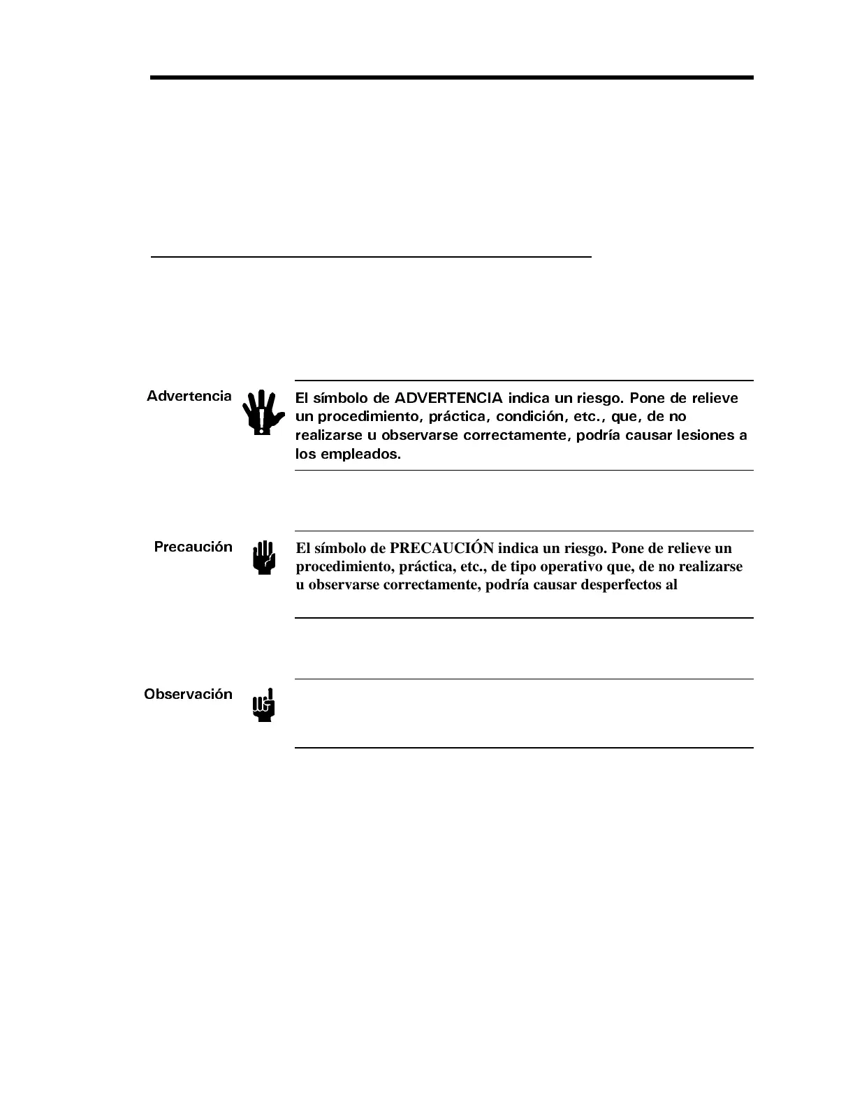 Definiciones de los mensajes de ADVERTENCIA, PRECAUCIÓN Y OBSERVACIÓN usados
