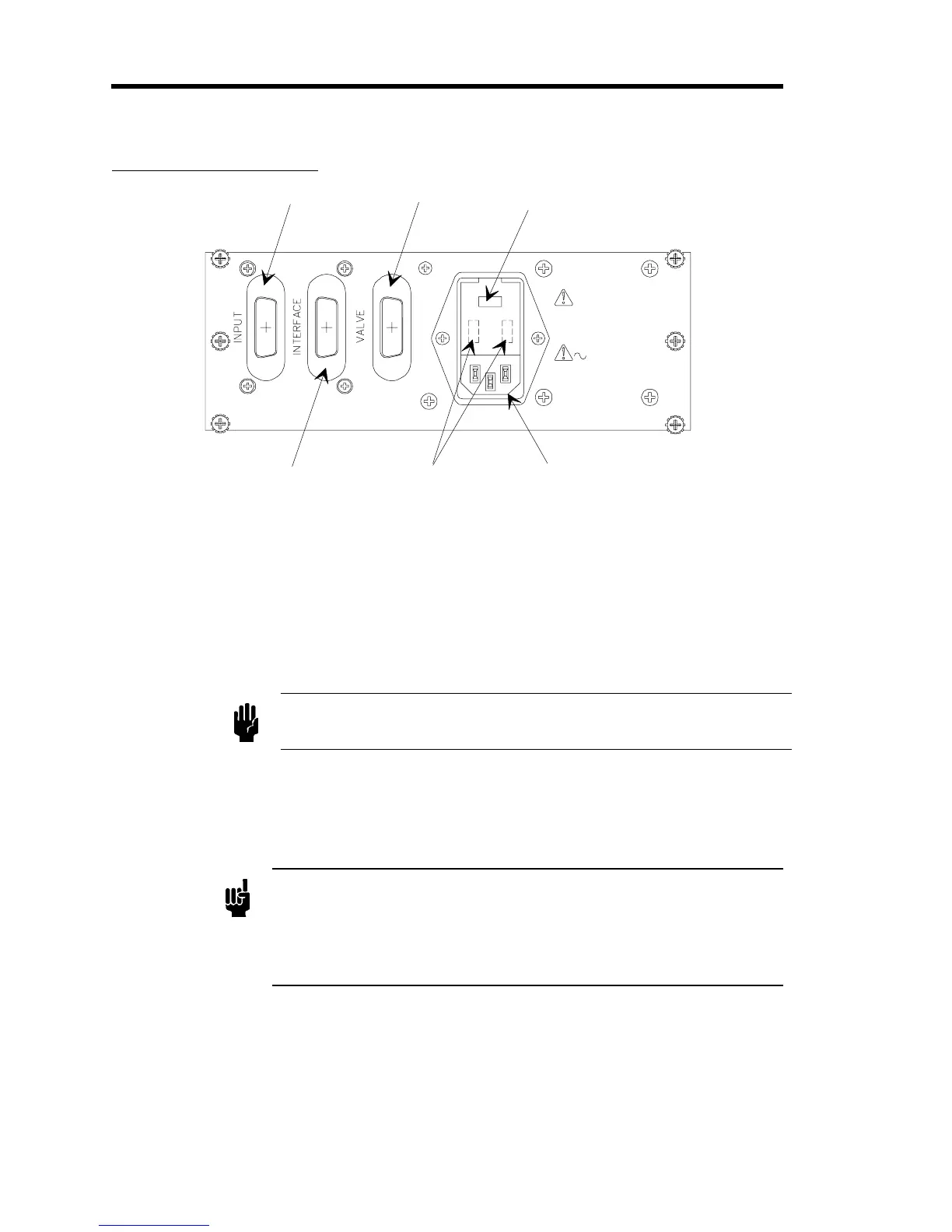- Provides 115 or 230 VAC to the 250 controller. For protective earthing, plug the