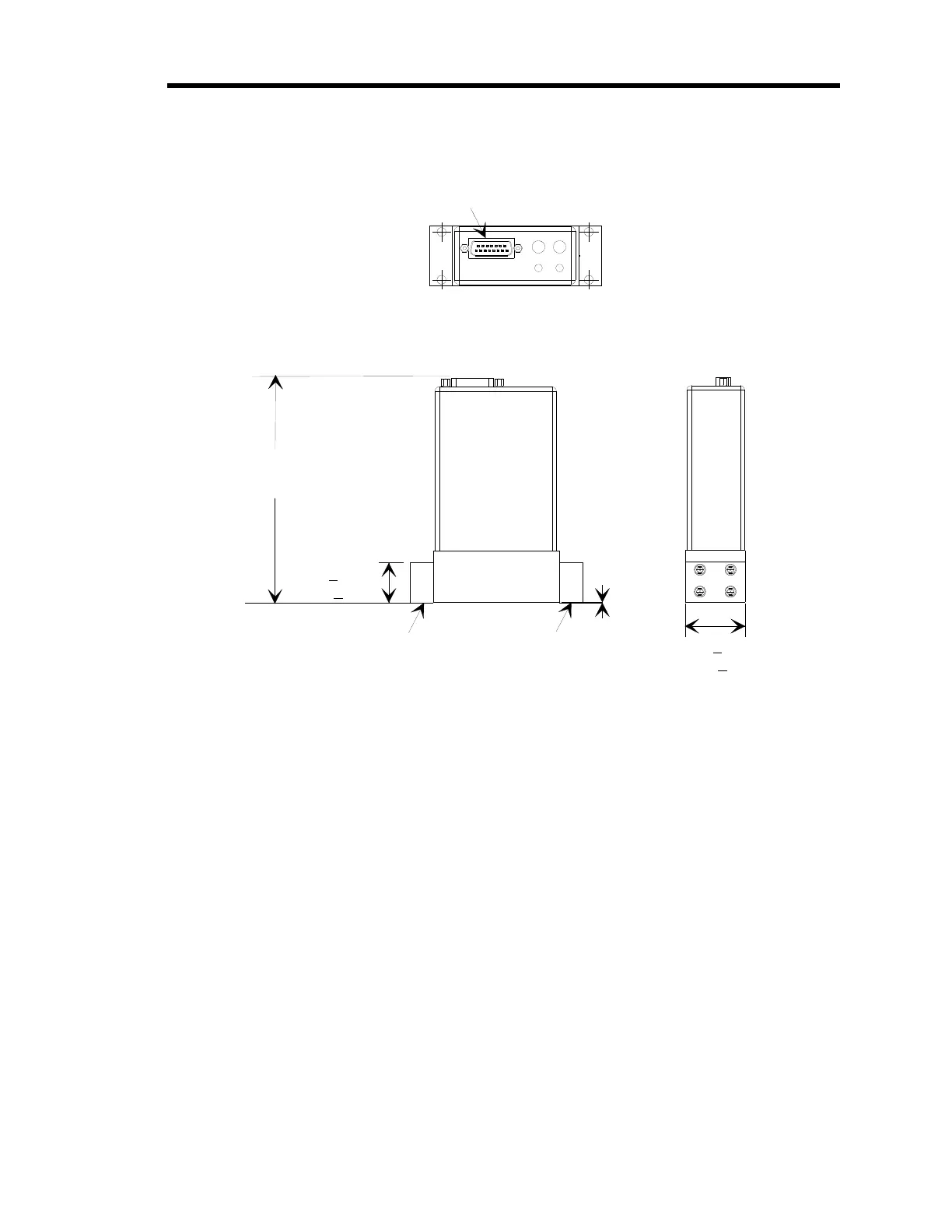 MKS 640B - Down Port Version; Figure 5: Top View of the down Port Type 640 B Controller; Figure 6: Front and Side View of the down Port Type 640