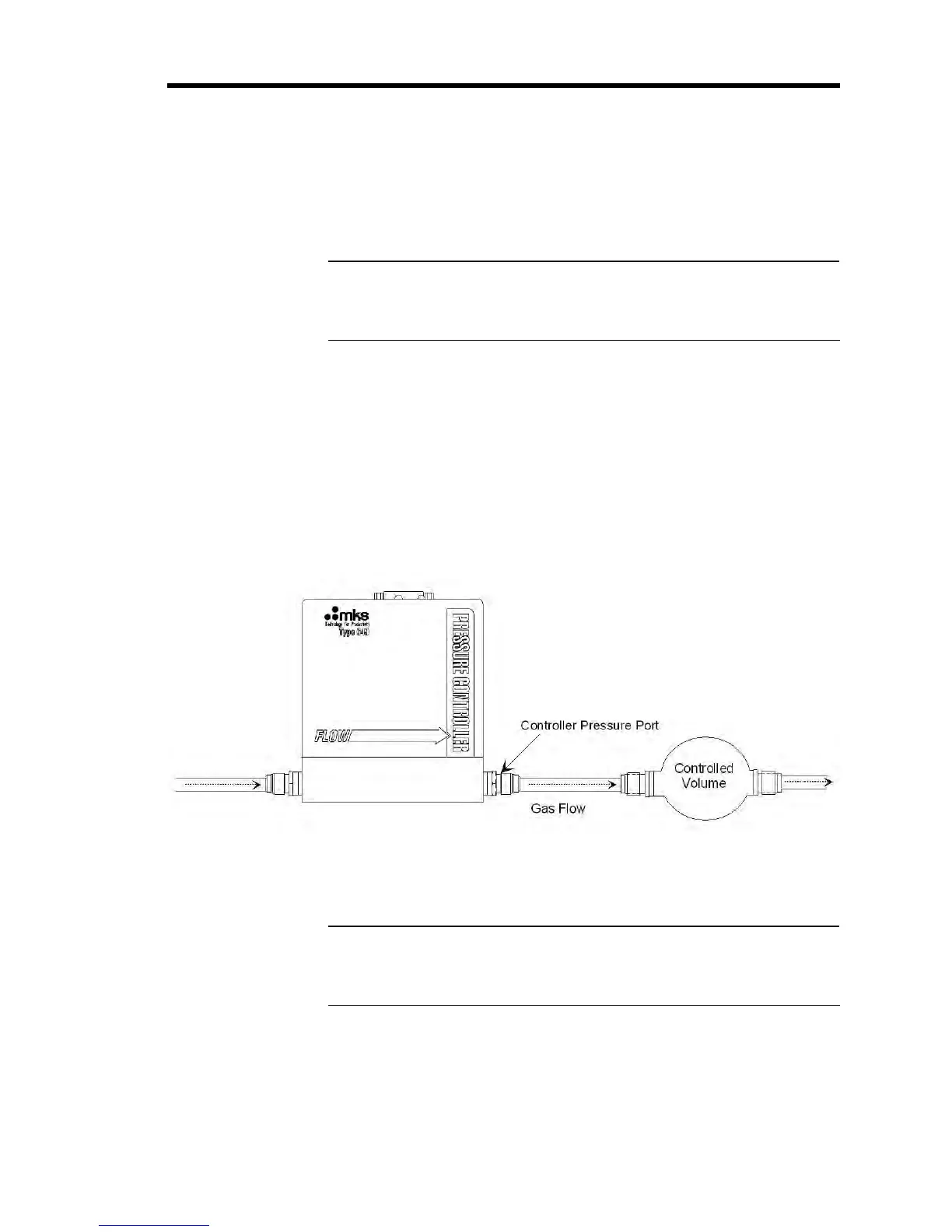 The 649 Pressure Controller should be mounted to provide downstream pressure control.