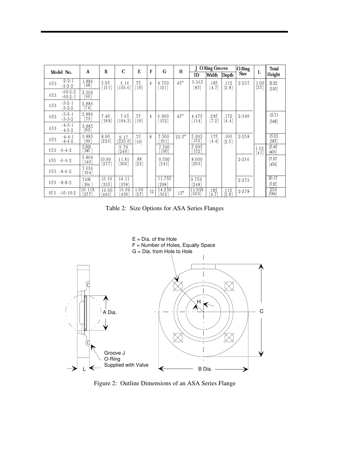 MKS 653B - ASA Series Flanges; Figure 2: Outline Dimensions of an ASA Series Flange; Table 2: Size Options for ASA Series Flanges