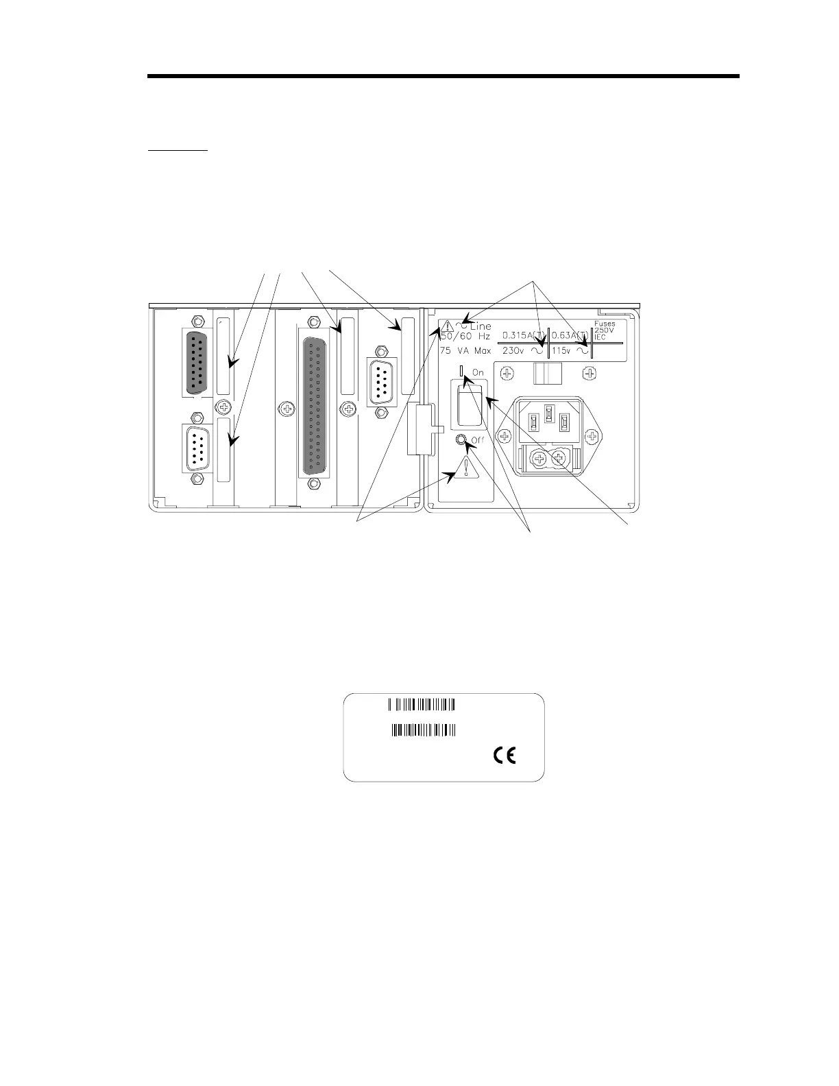 The rear panel of the 670 unit carries labels to identify each board, alert the user to read the