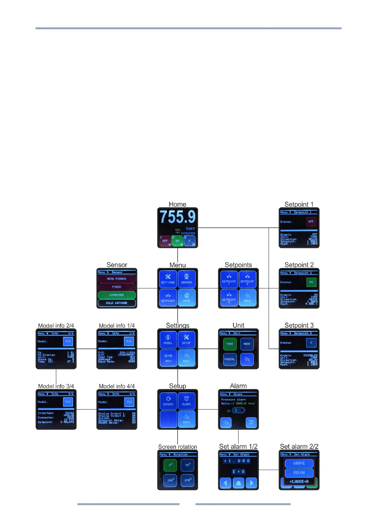 multiple sensors, it is possible to choose which sensor pressure value is displayed on the screen. All of this