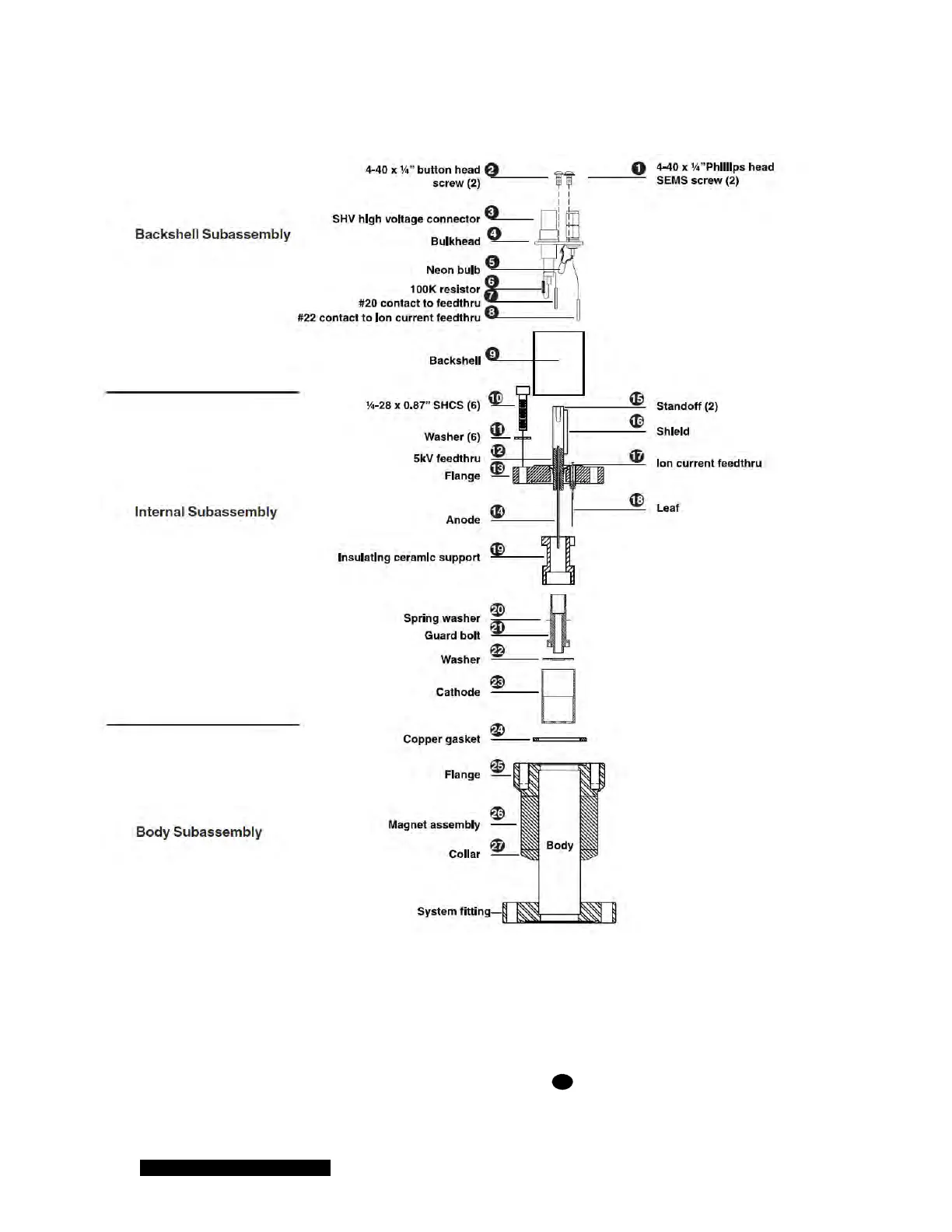 Figure 12-3 An exploded view of the 421/422 cold cathode gauge assembly.