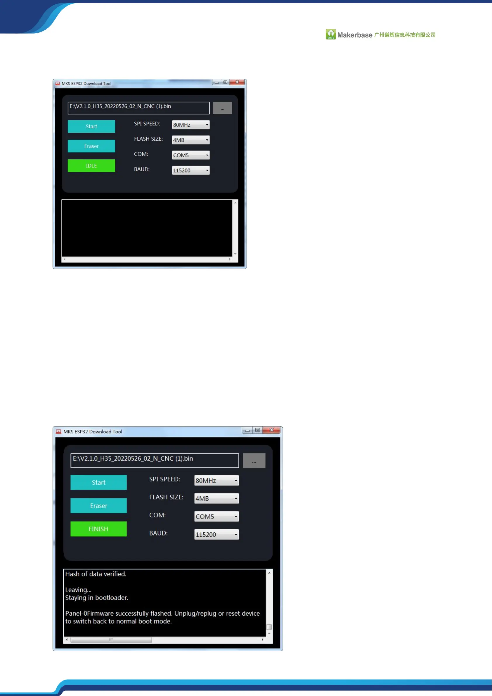 SPI SPEED, FLASH SIZE, BAUDRATE parameters are consistent with the picture settings.