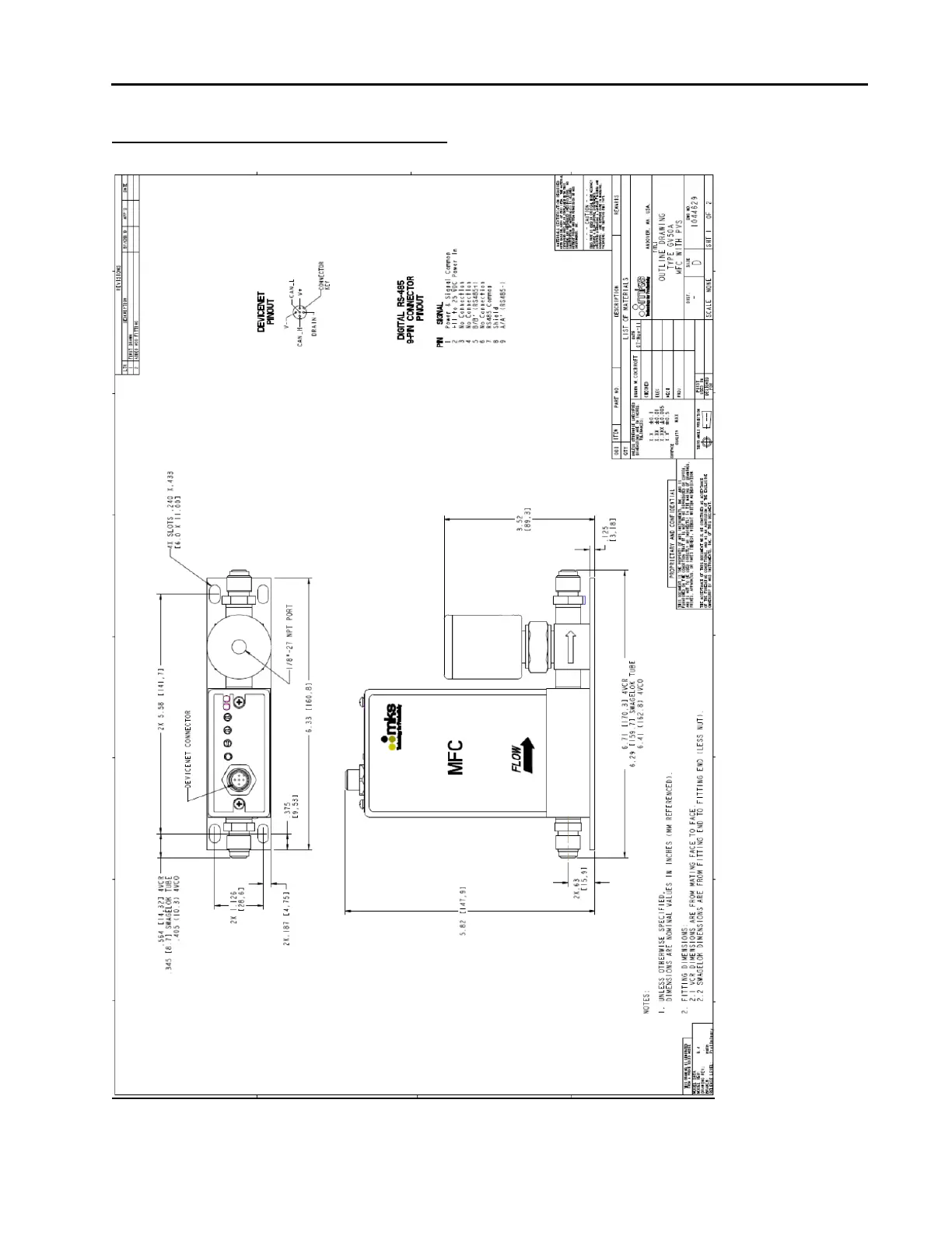 Appendix D : Outline Drawings GV50A MFC w/ Integral Shut-off Valve