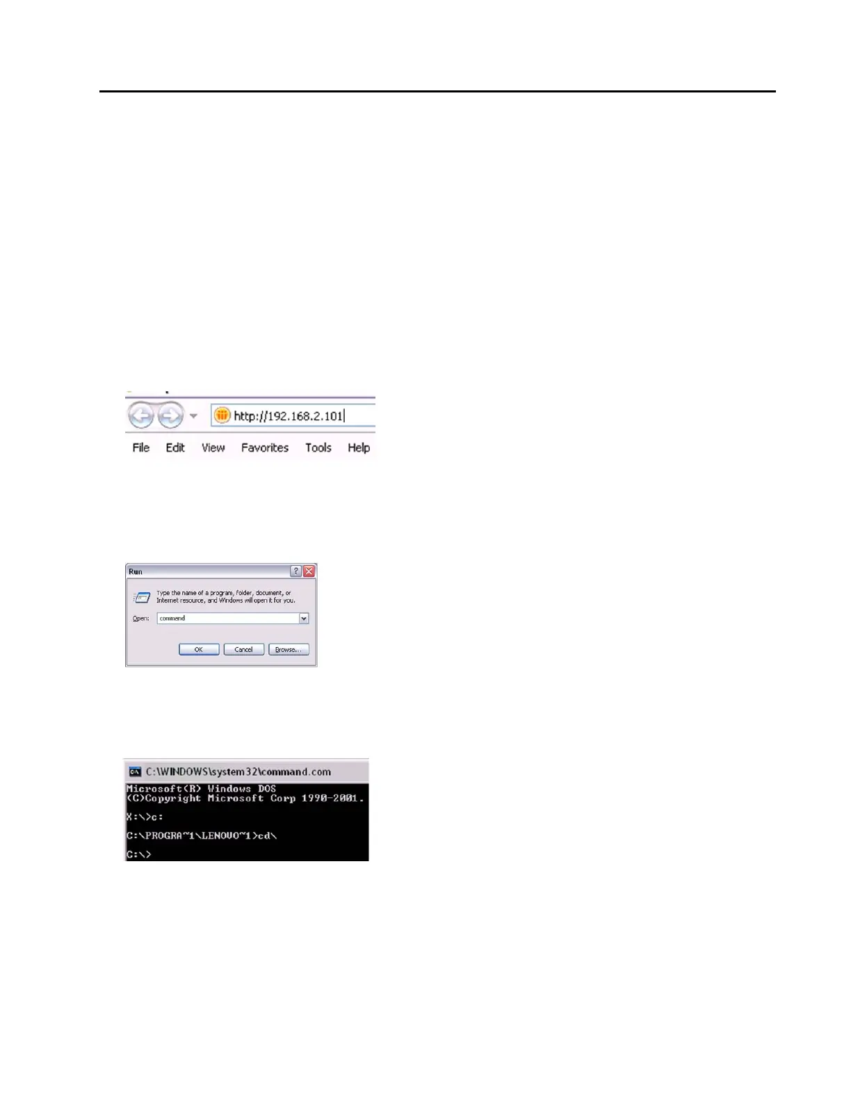 This will bring you to the C:\> prompt. See the example below: