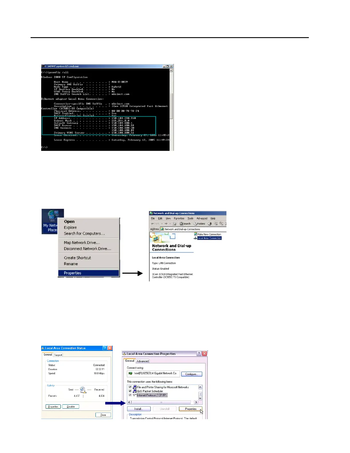 From your computer’s “Start” menu, select “Settings” Network and Dialup Connections Local Area