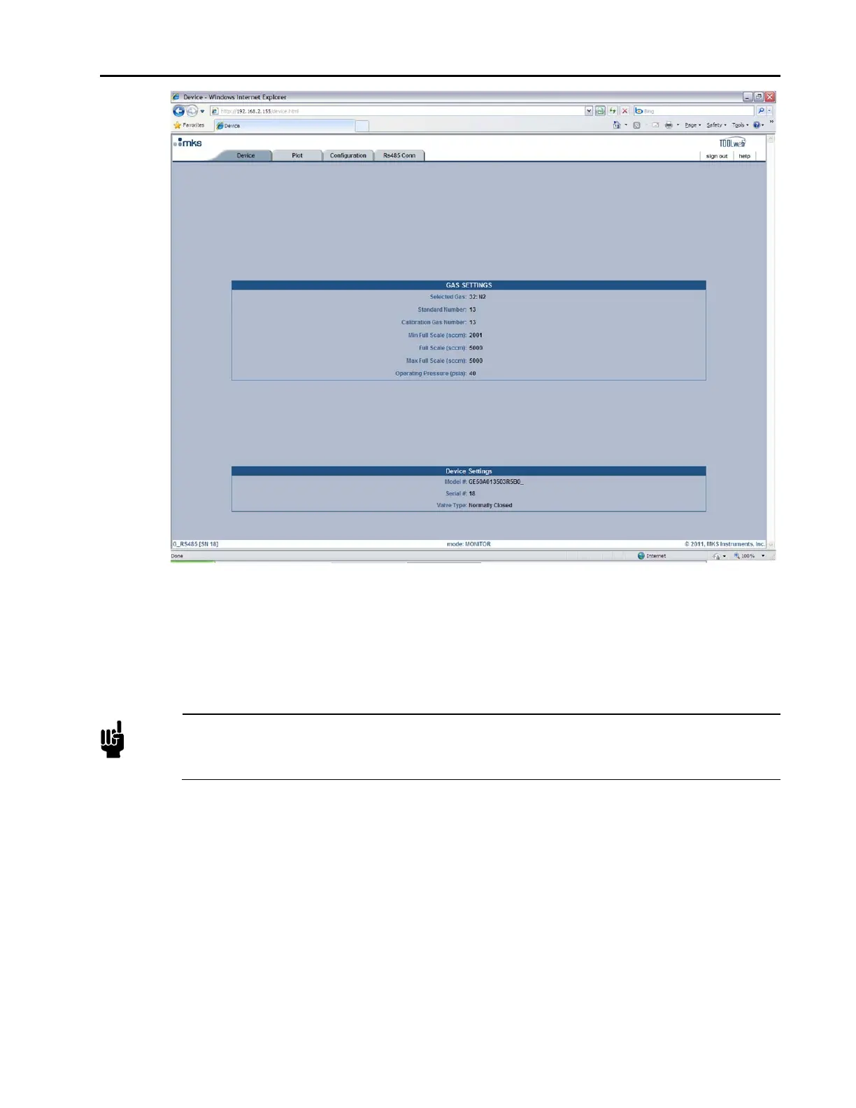 Figure 9: Embedded GUI, MFC Device Page in Monitor Mode