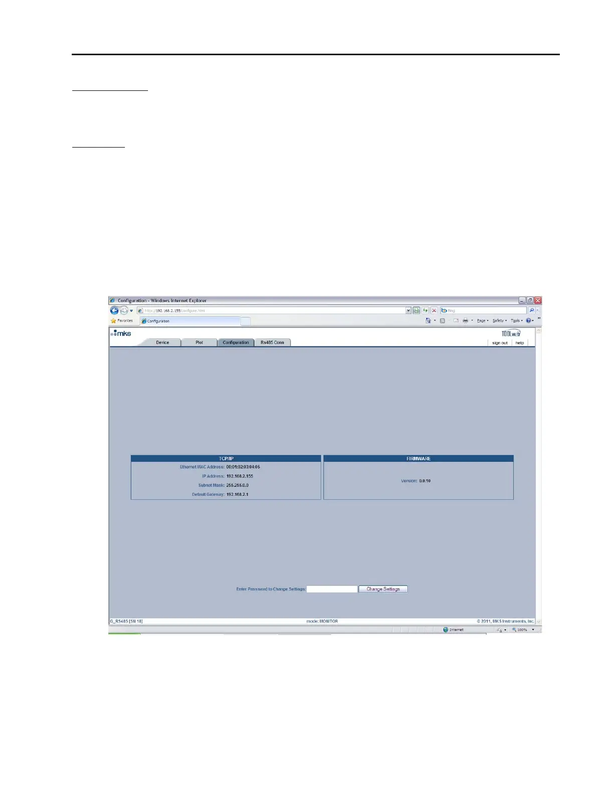 This page displays the TCP/IP settings and the current Firmware version for the MFC. In “Monitor Mode”