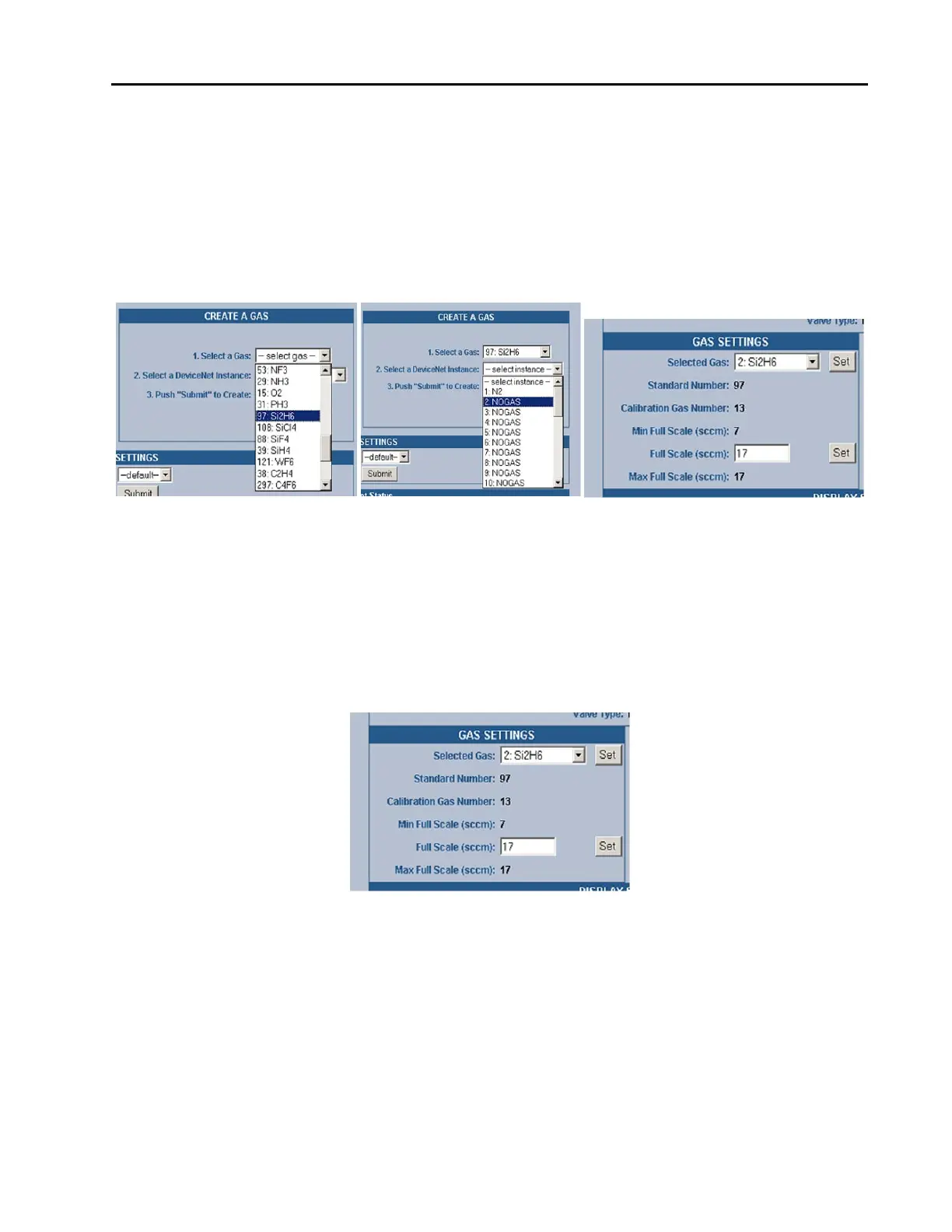 Figure 15: Embedded GUI, Creating A New Gas Instance