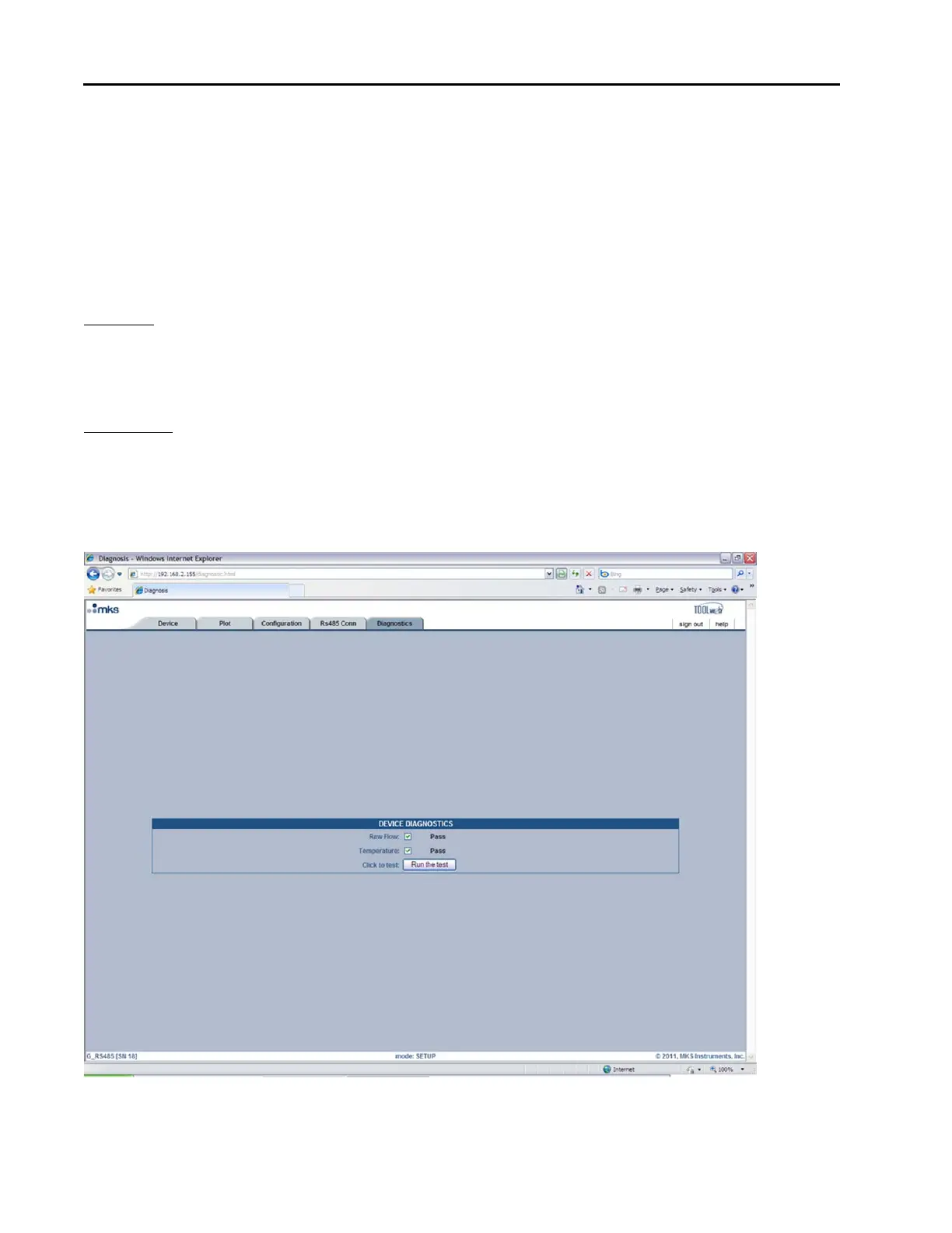 Diagnostics Page – Setup Mode