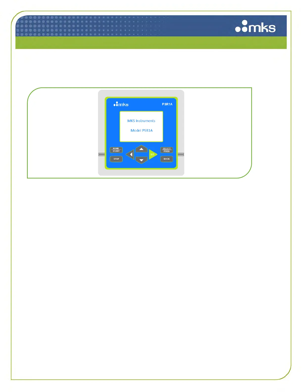 When the PSR1A/PSR4A is powered up, a home screen is displayed as shown below.