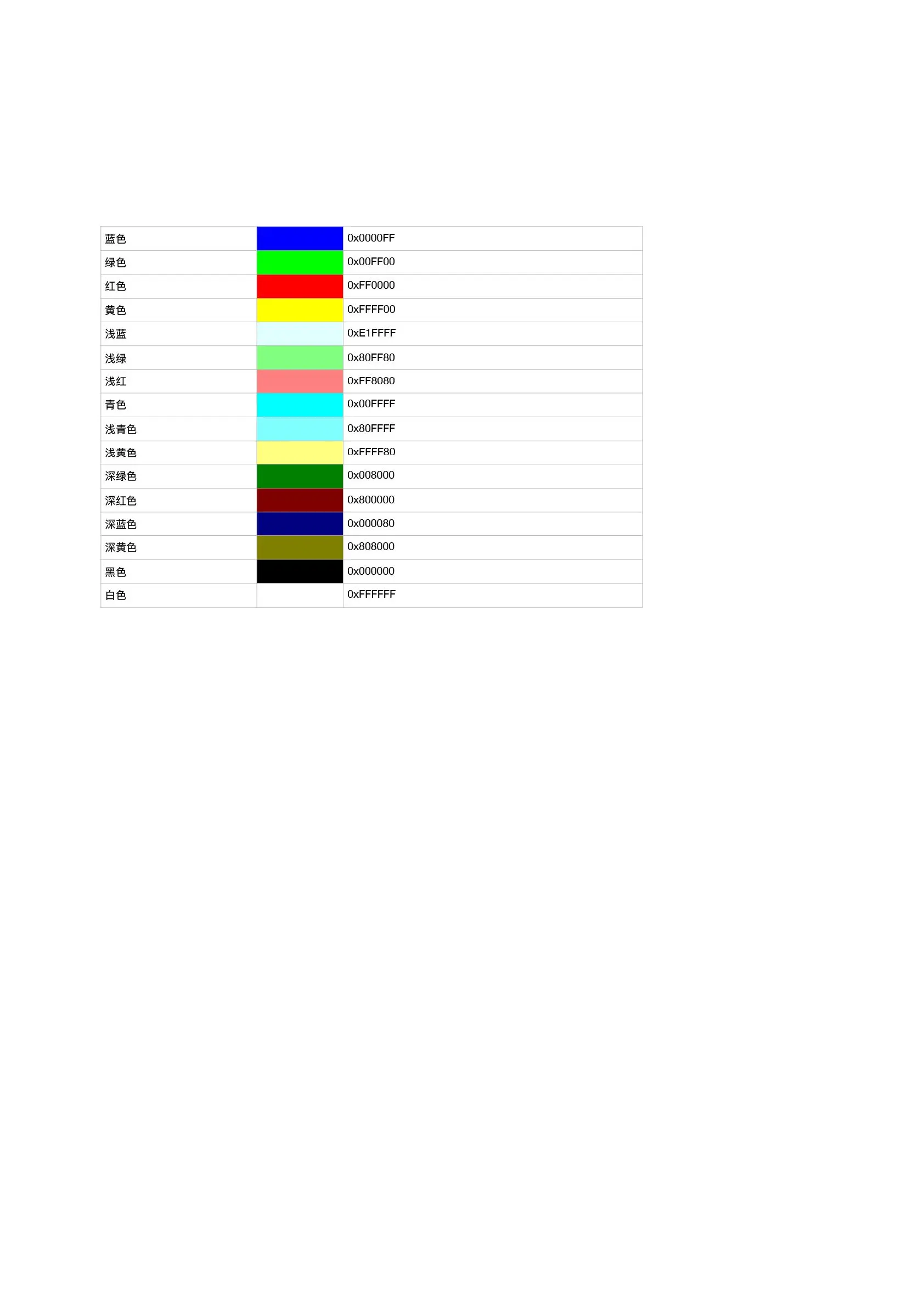 Common color corresponding to the hexadecimal value
