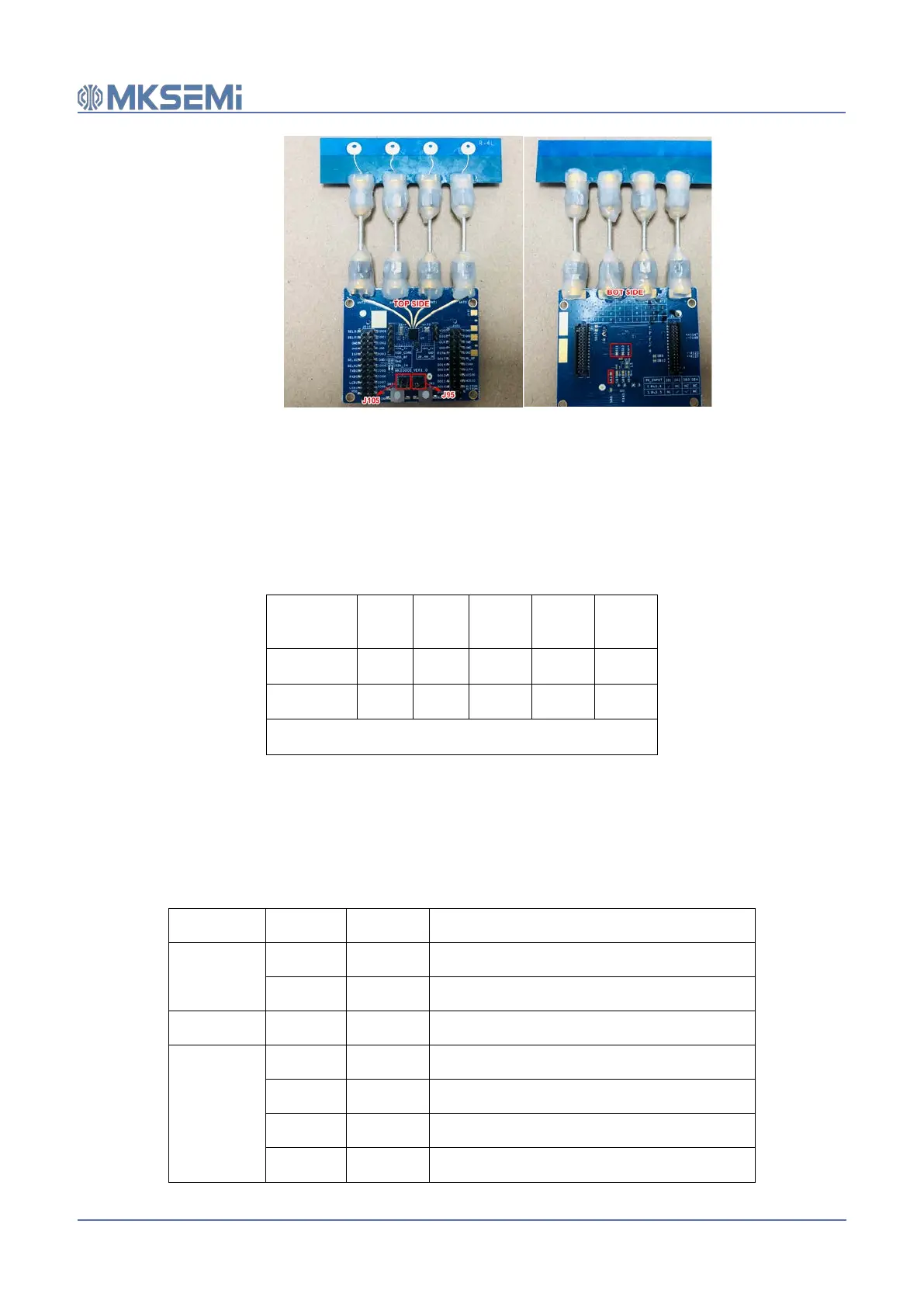 The MK8000 EVB has two rows of jumpers that are connected to the I/Os of the chip to offer the