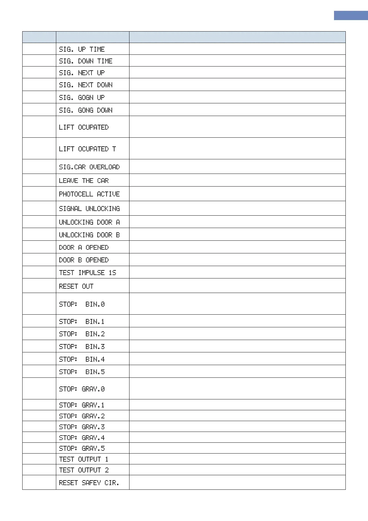 Cabin position output – binary code bit 0. It is used for car position