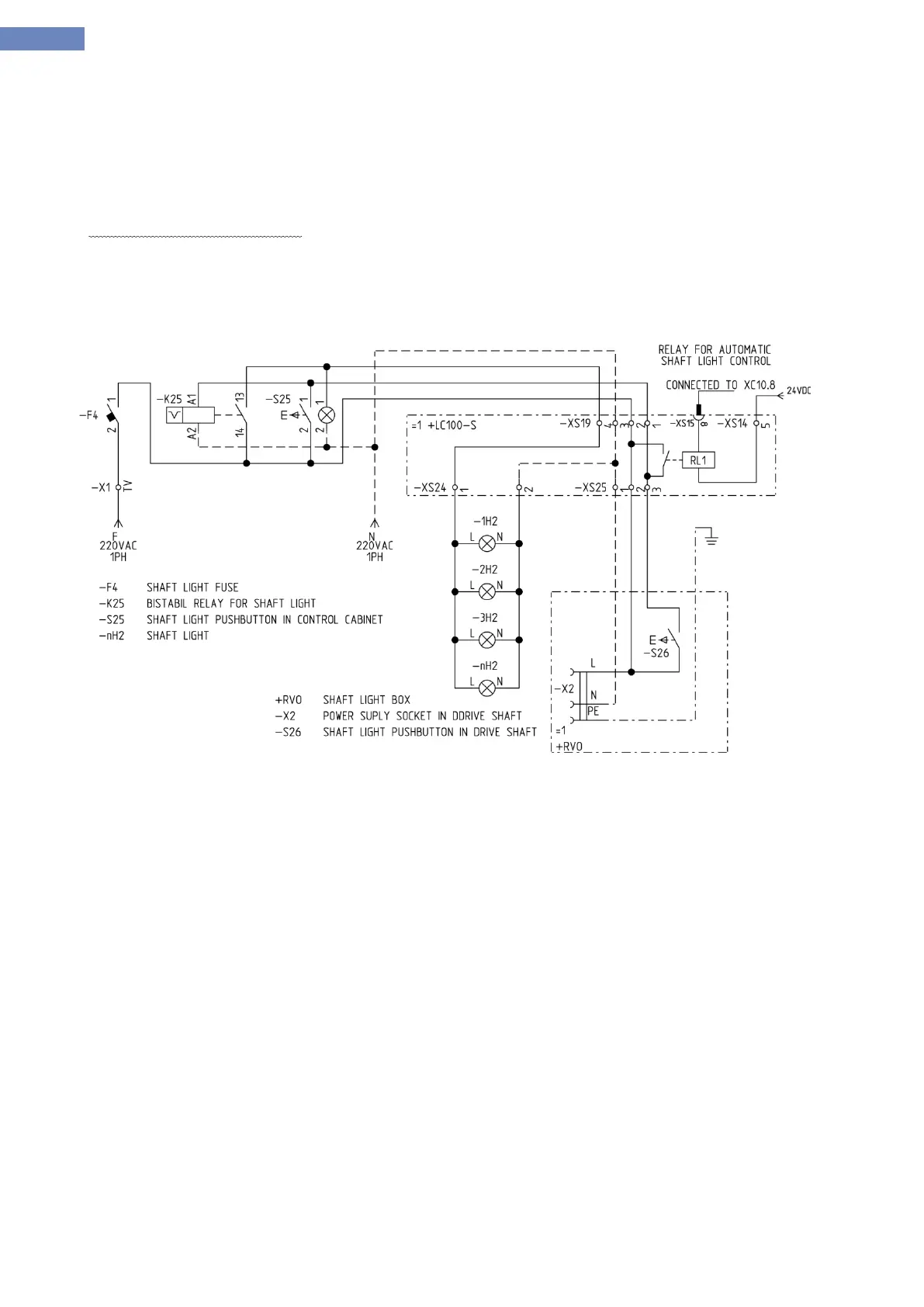 - XS25 – connector for shaft light box in the drive shaft pit.