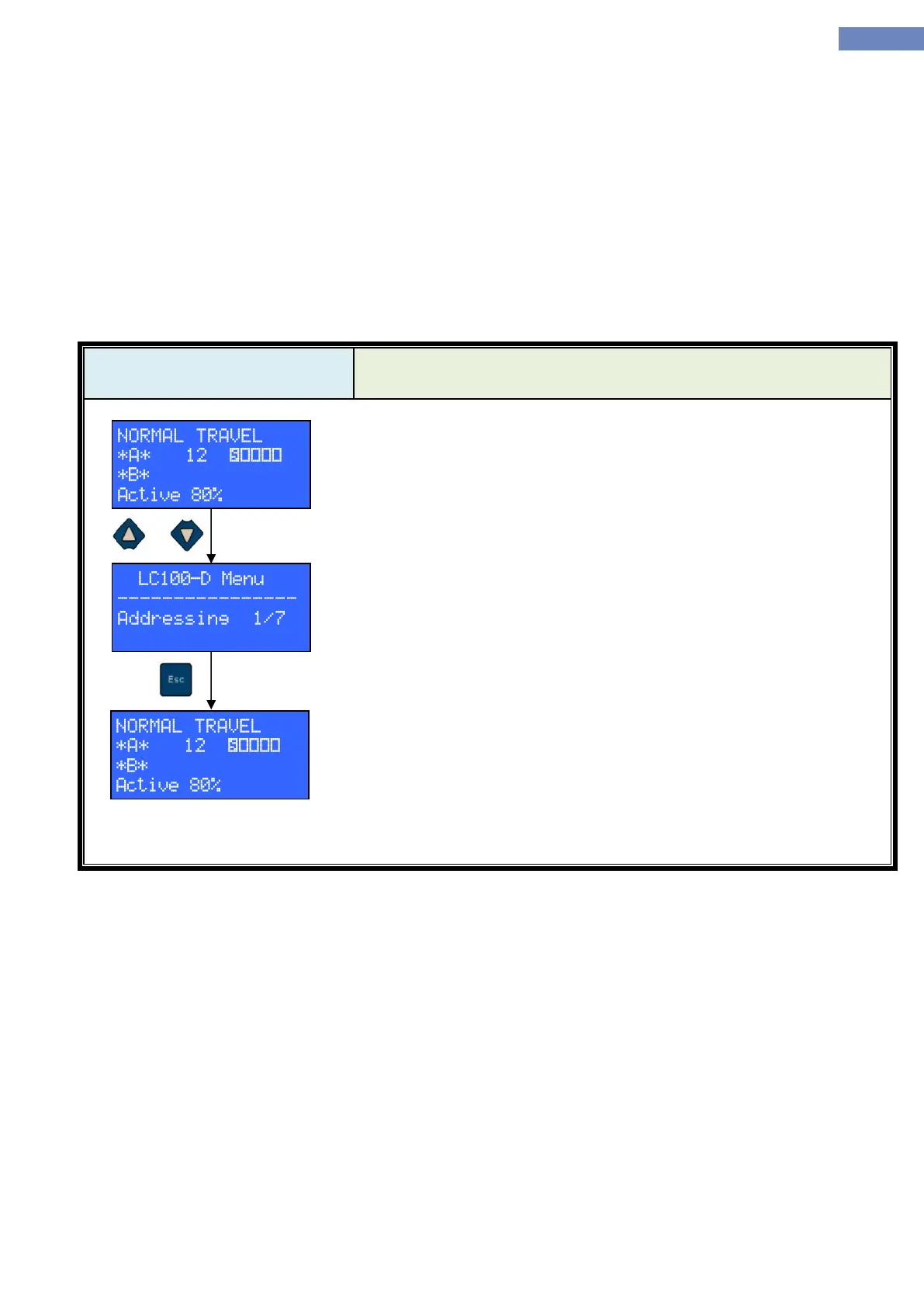 Upon exiting from additional menu, LC100-D returns to the state it was in