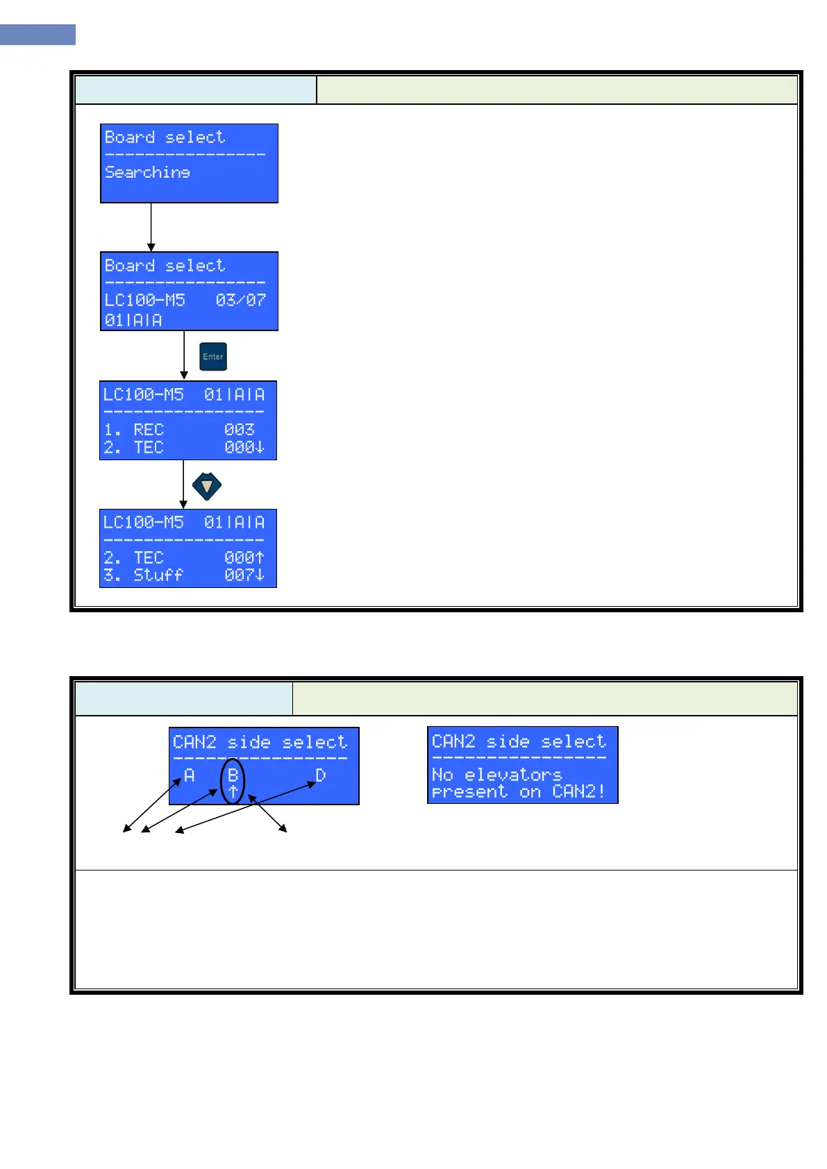 - CAN2 side select menu can be used to connect LC100-D to an elevator via CAN2 bus.