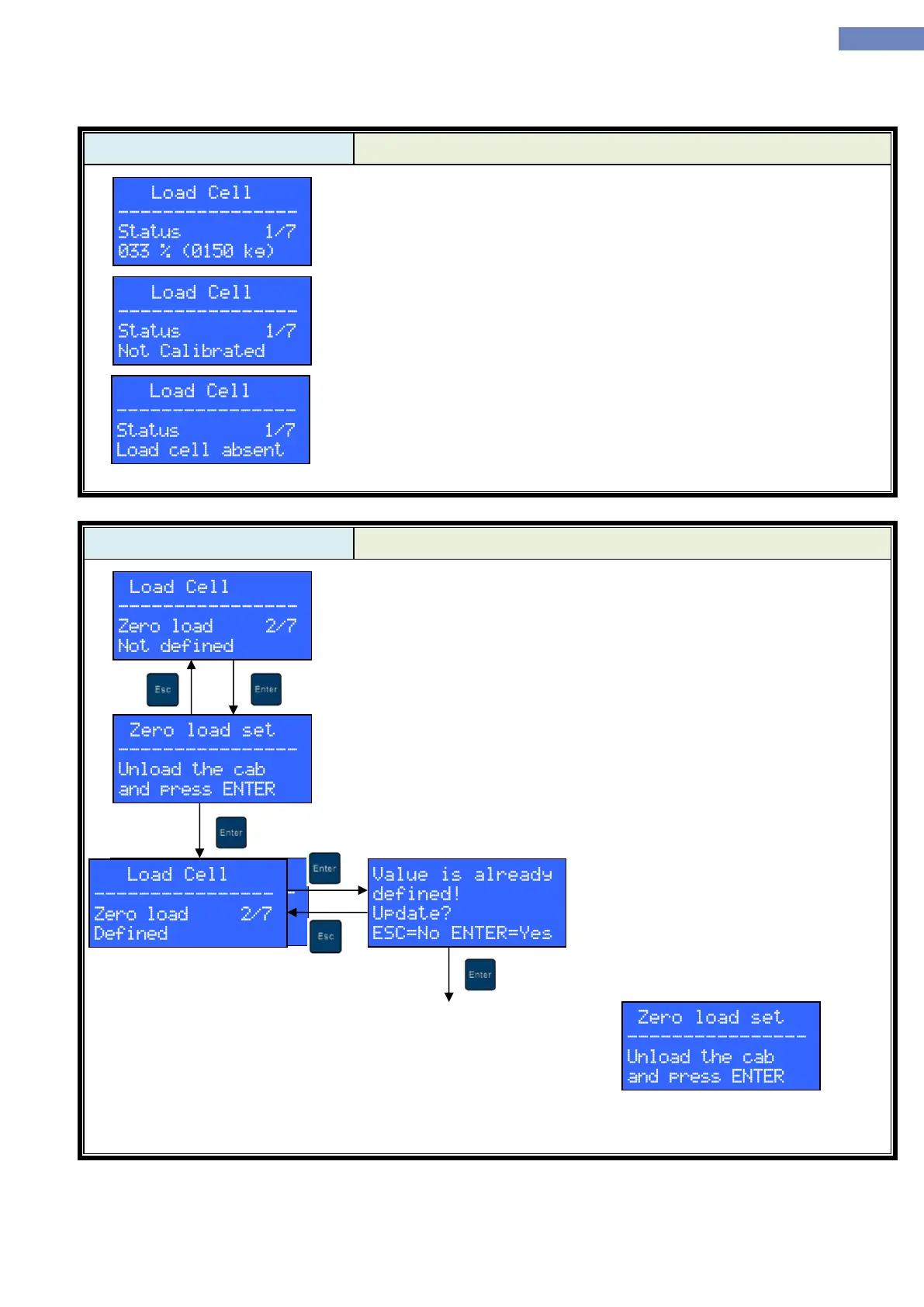 message is displayed. Zero load calibration procedure can be started by