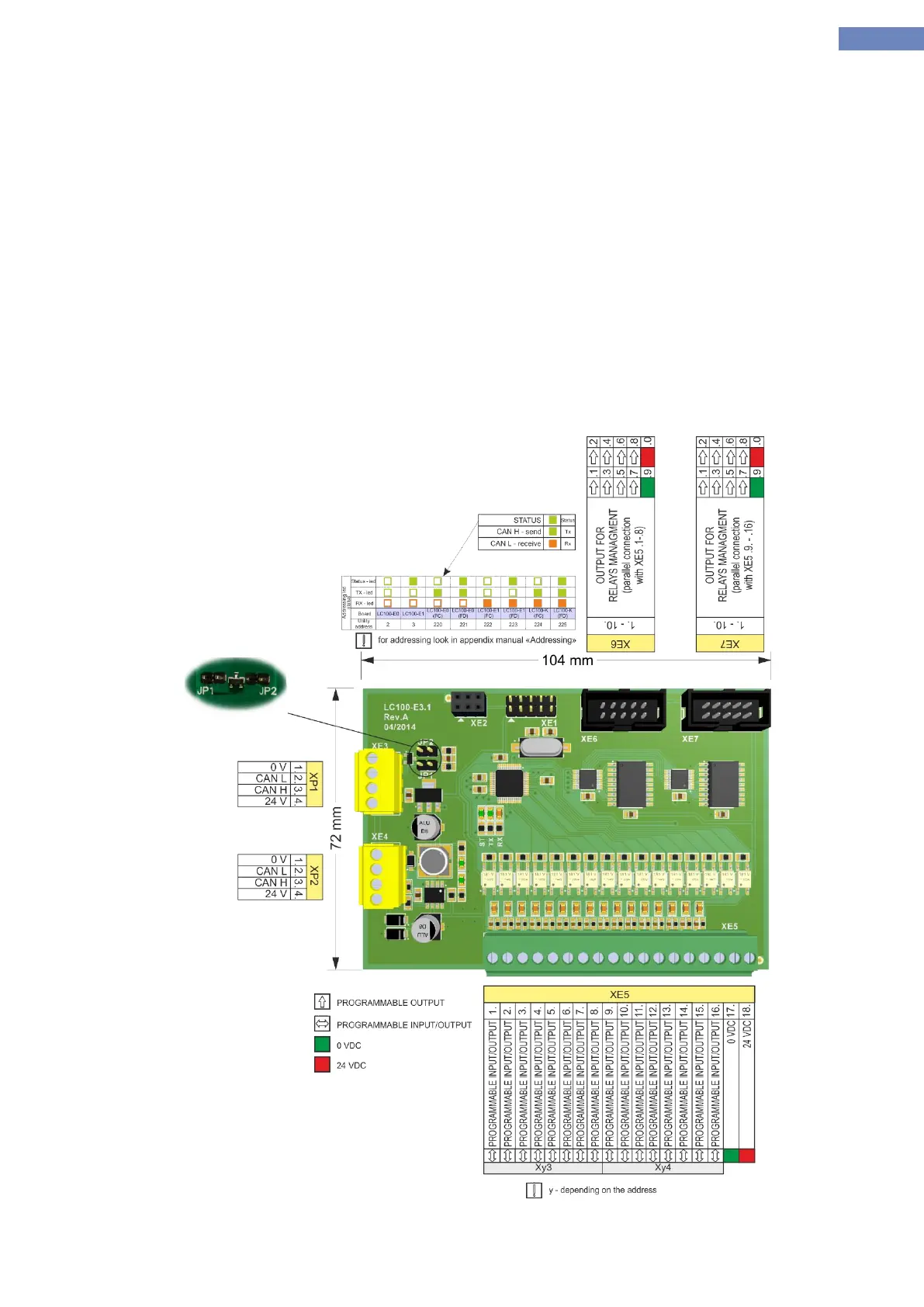 The system can have 8 LC100-E3.1 boards addresses LC100-E0, E1, E0(FC), E0(FD), E1(FC), E1(FD), LC100-