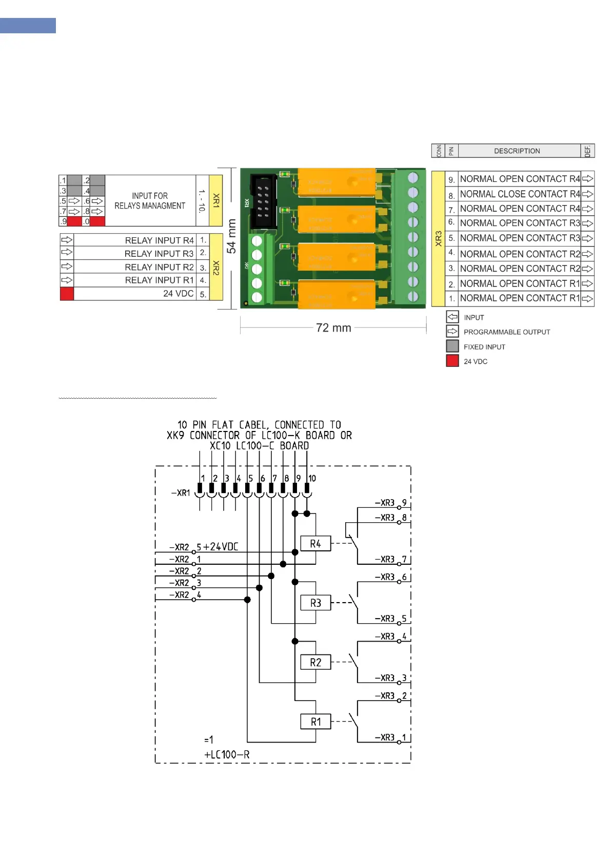 XR1 which is connected to XC10 or XK9 connector, managment of relays is also possible through XR2 connector.