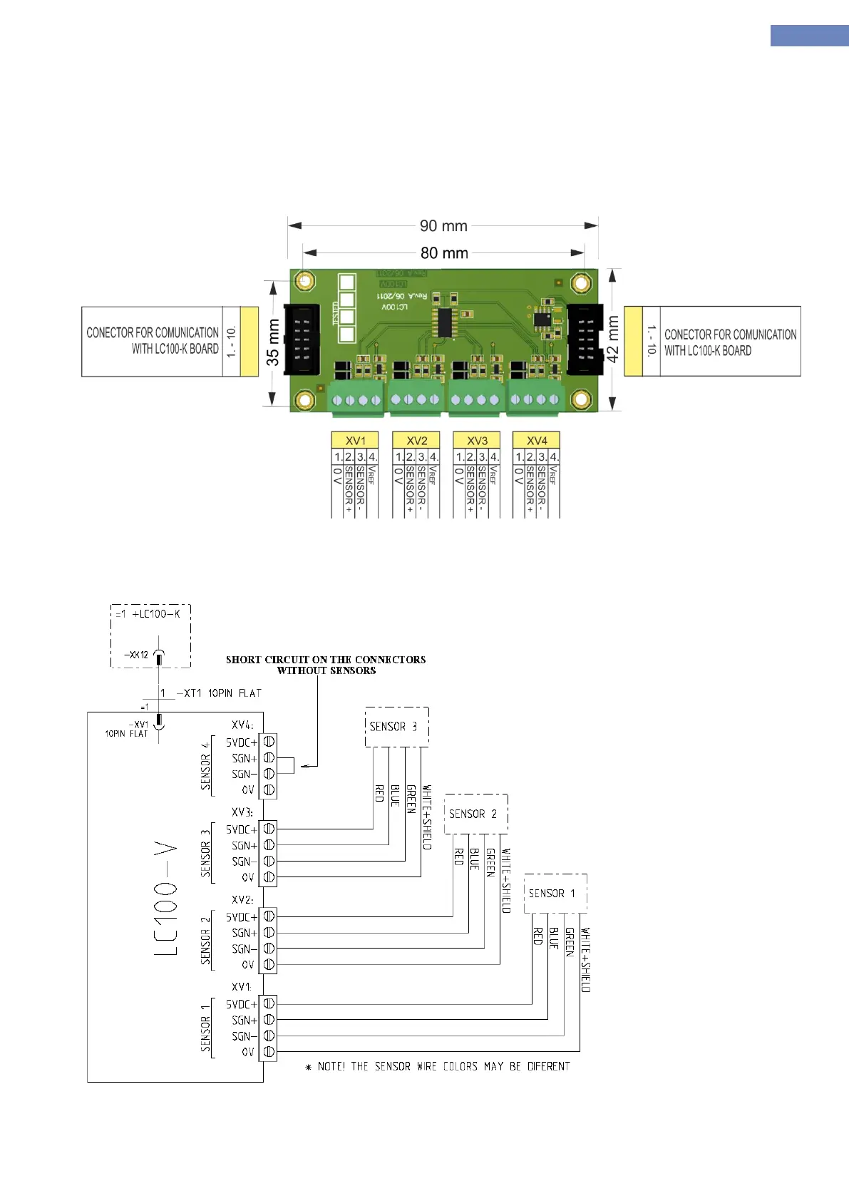 LC100-V board is used to connect the load measurement cells. It has four connectors for connecting up to four