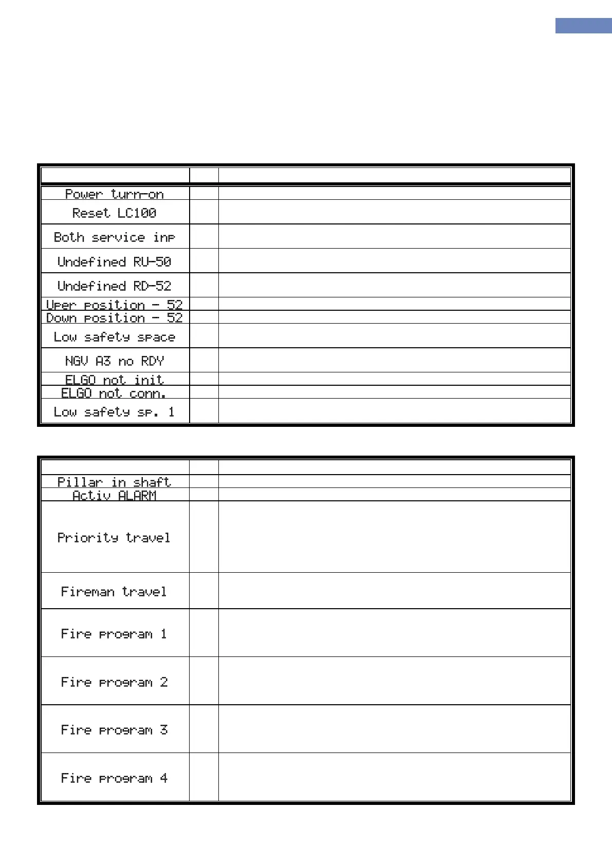 line of primary screen will alternately show messages describing the current state of elevator.
