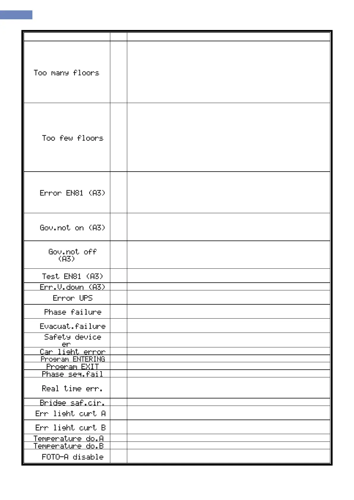 Indicates car light error. Car light is controlled over input FI-245.