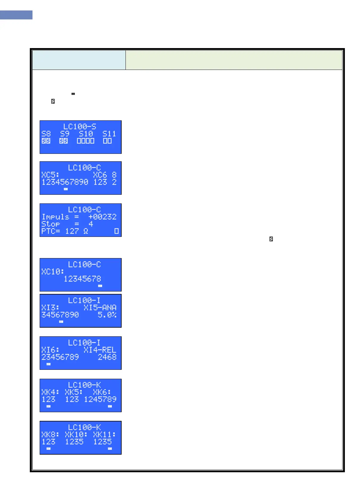 for input signals for connectors XK10 and XK11. Display exist only if the LC100-