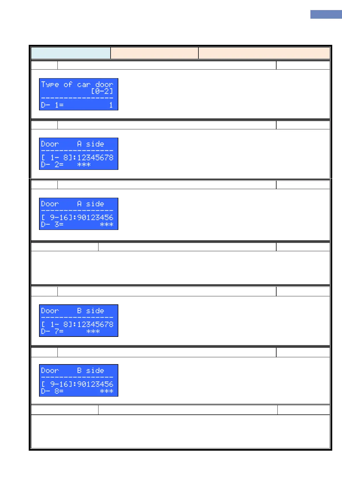 Parameter D-03 select door opening in the stations 9 to 16.