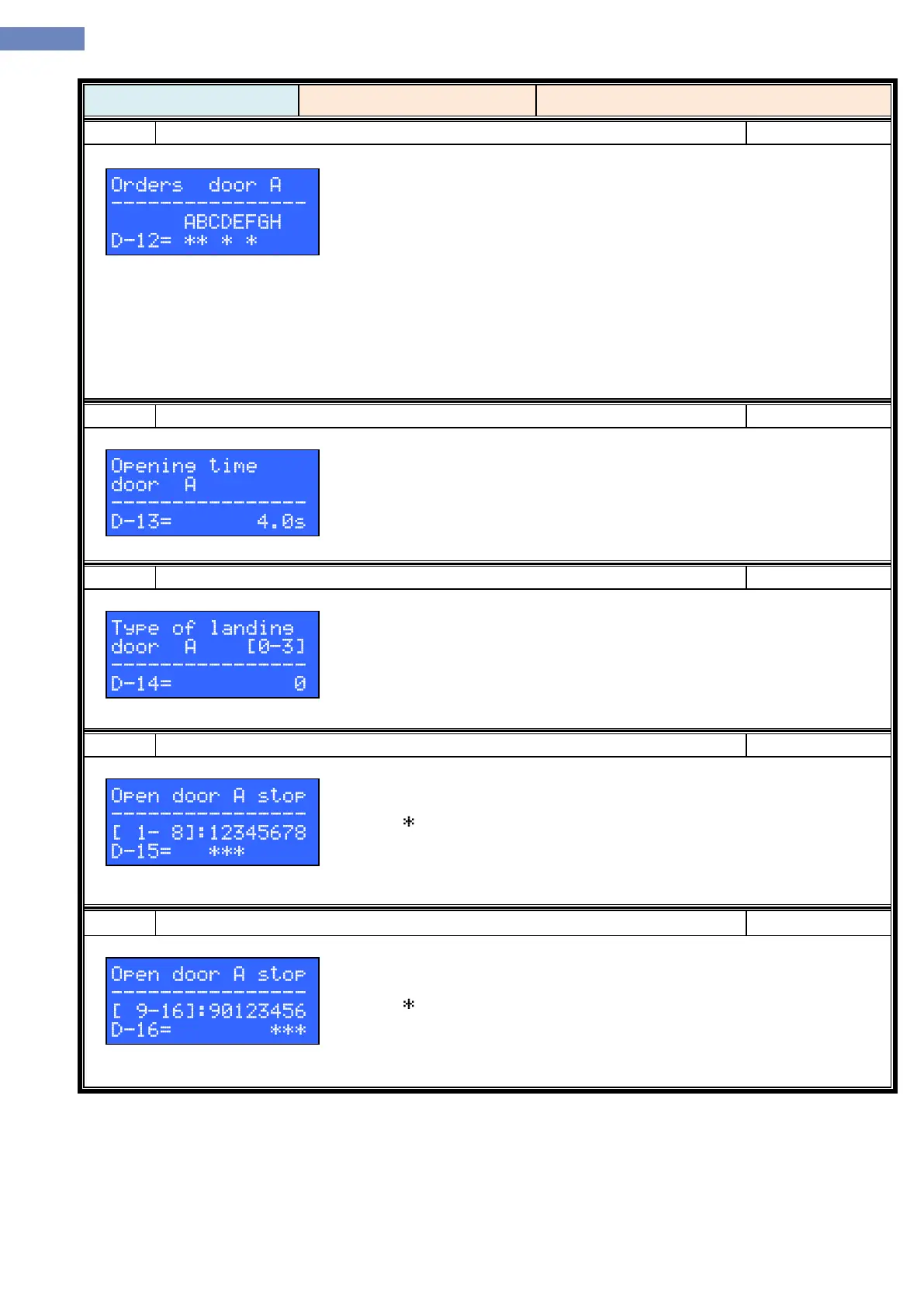 16. Parameter has function with automatic landing door A D-14=1 or 3.