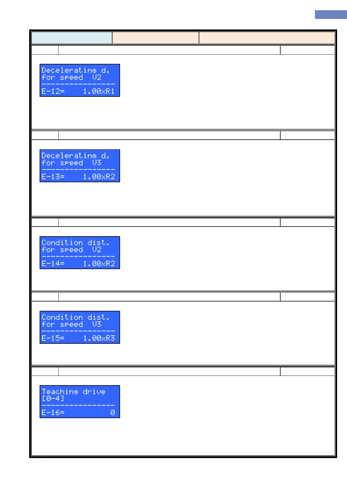 If there is need to set aditional speed V3=2m/s with deceleration distance 5m E-13 will be set to