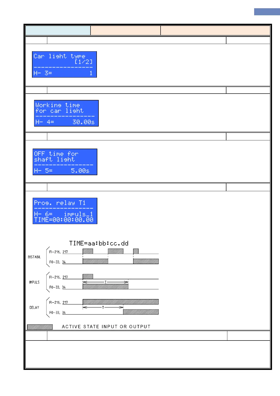 3. DELAY Output function FO-33 is activated after time set in this