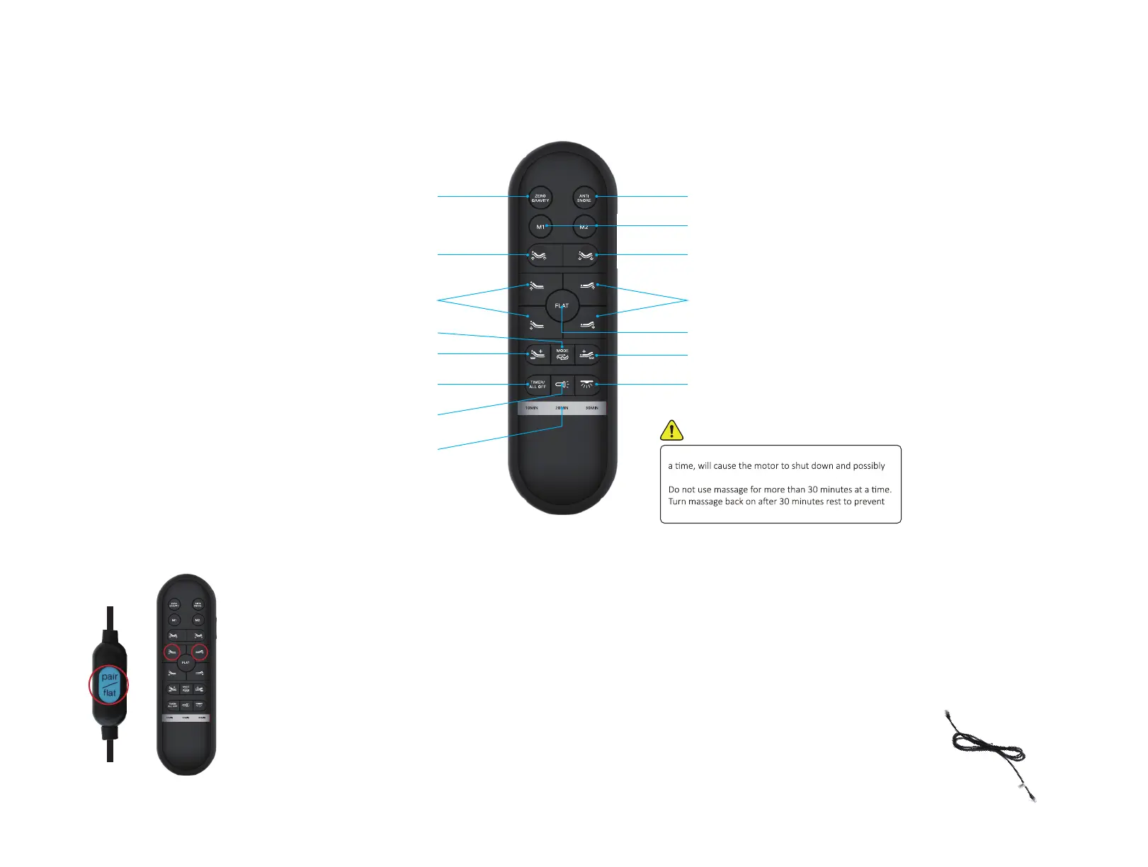 Press and hold head up ∆, foot up ∆ and pairing button on the cord