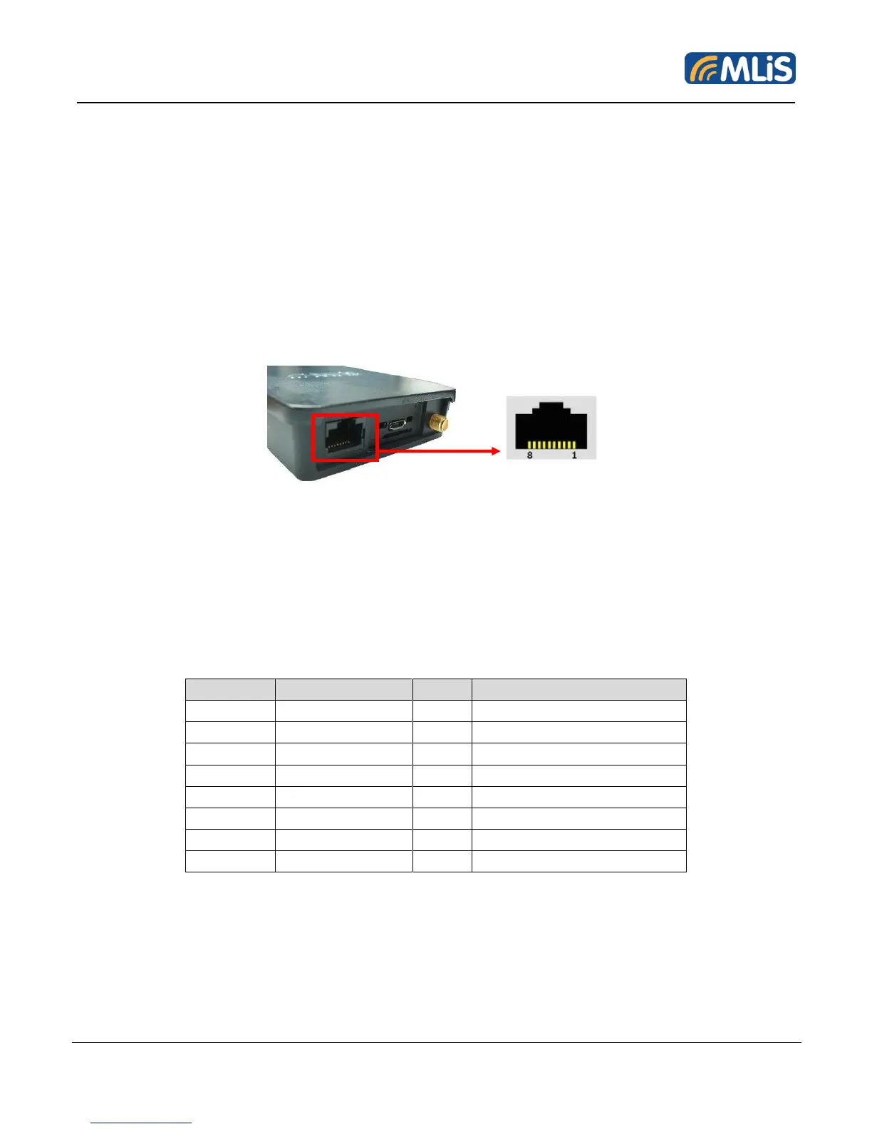 Figure 5: RJ45 Connector Pin Definition for MLB-G3002