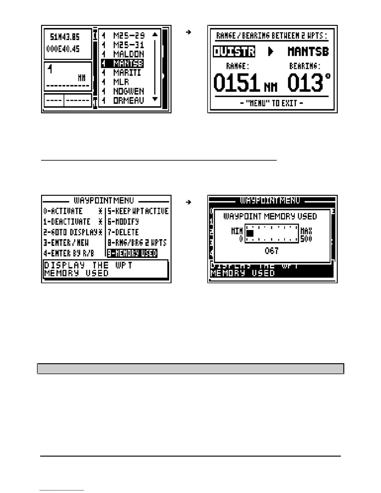 Note: The capacity of the memory is 500 waypoints.