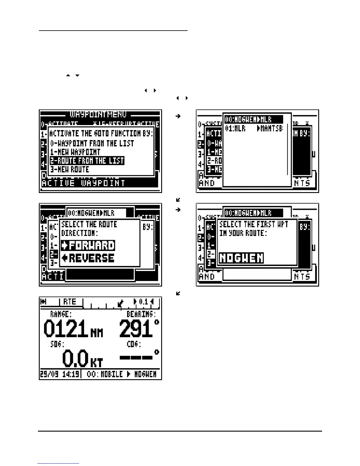 Note: The GOTO ROUTE function can also be activated from the ROUTE MENU by choosing 0