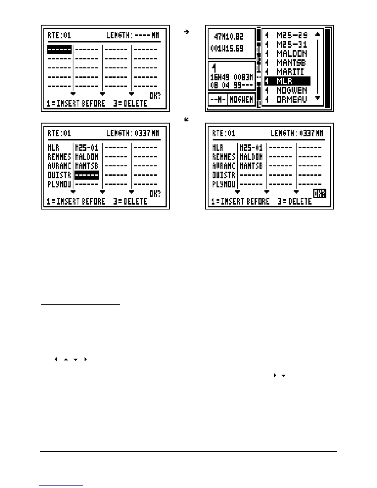 the key 1 to INSERT A WAYPOINT BEFORE (before the cursor) or by pressing the key 3 to