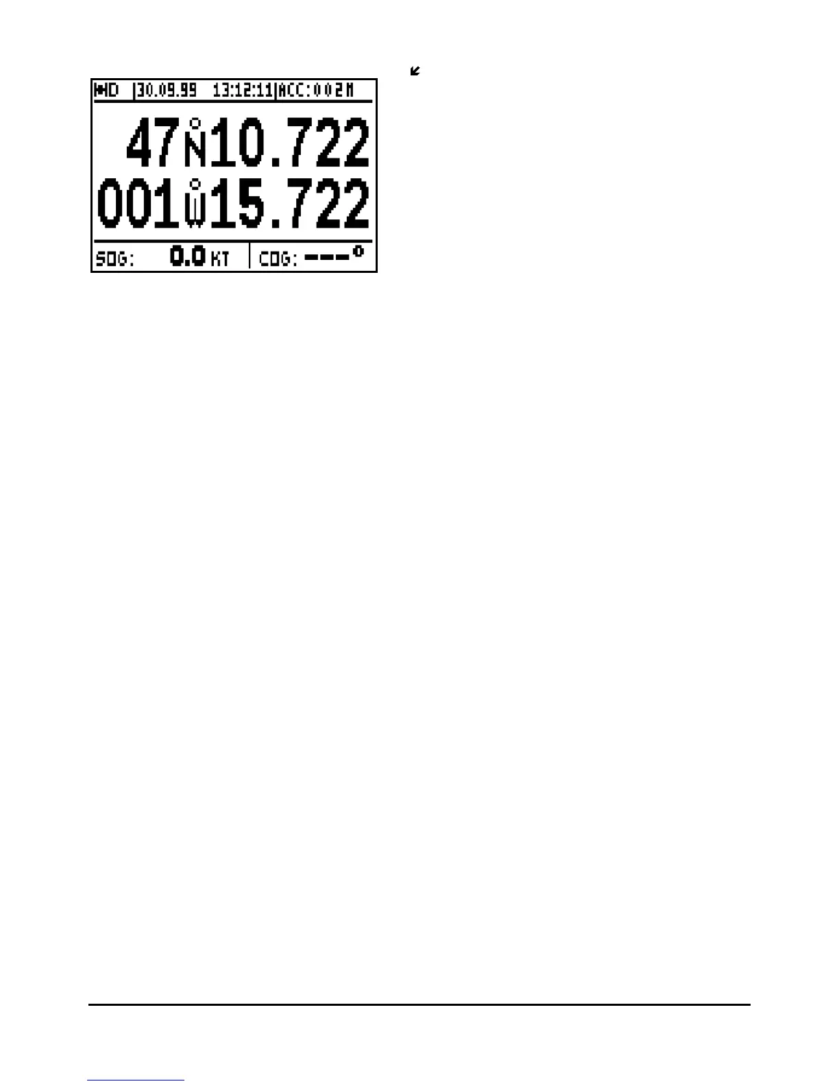 displayed on the top left of the screen when the FX412 calculates its position in di